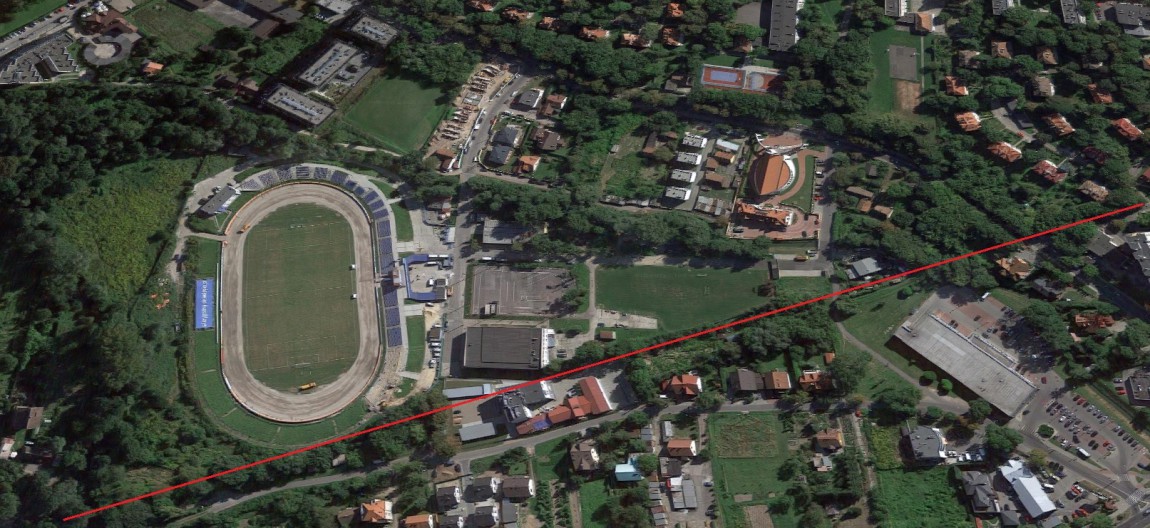 Młodsze to współczesne zdjęcie satelitarne. Na starszym żółta - a na młodszym czerwoną linią zaznaczyliśmy fragment kolei - czy też reliktów kolei kocmyrzowskiej (linia 111) przechodzącej przez kadr. Pociągi pasażerskie przestały kursować tą linią do Kocmyrzowa w maju 1970 r.