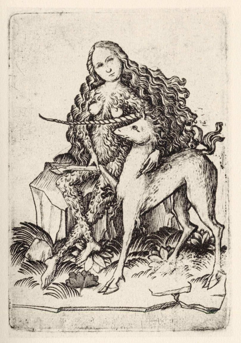 Mistrz E.S. „Dzika kobieta z jednorożcem”, 2. poł. XV w.
