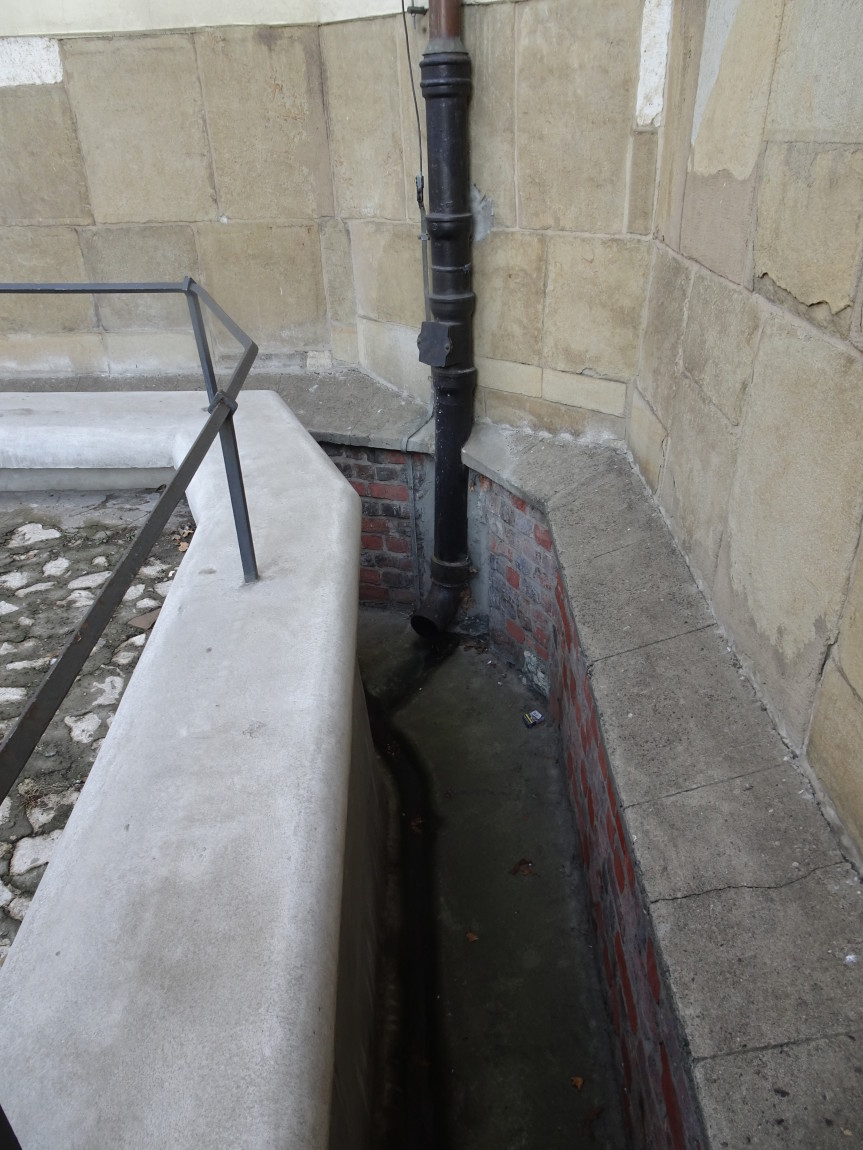 Dla ochrony dolnych partii murów historycznych kościołów przed zawilgoceniem utrzymuje się wokół nich wykopy do fundamentu pokazujące jednocześnie, jak znacznie podniósł się przez wieki [poziom terenu otaczającego kościoły franciszkanów, dominikanów, Mariackiego czy św. Wojciecha, którego piwnice były kiedyś parterem.