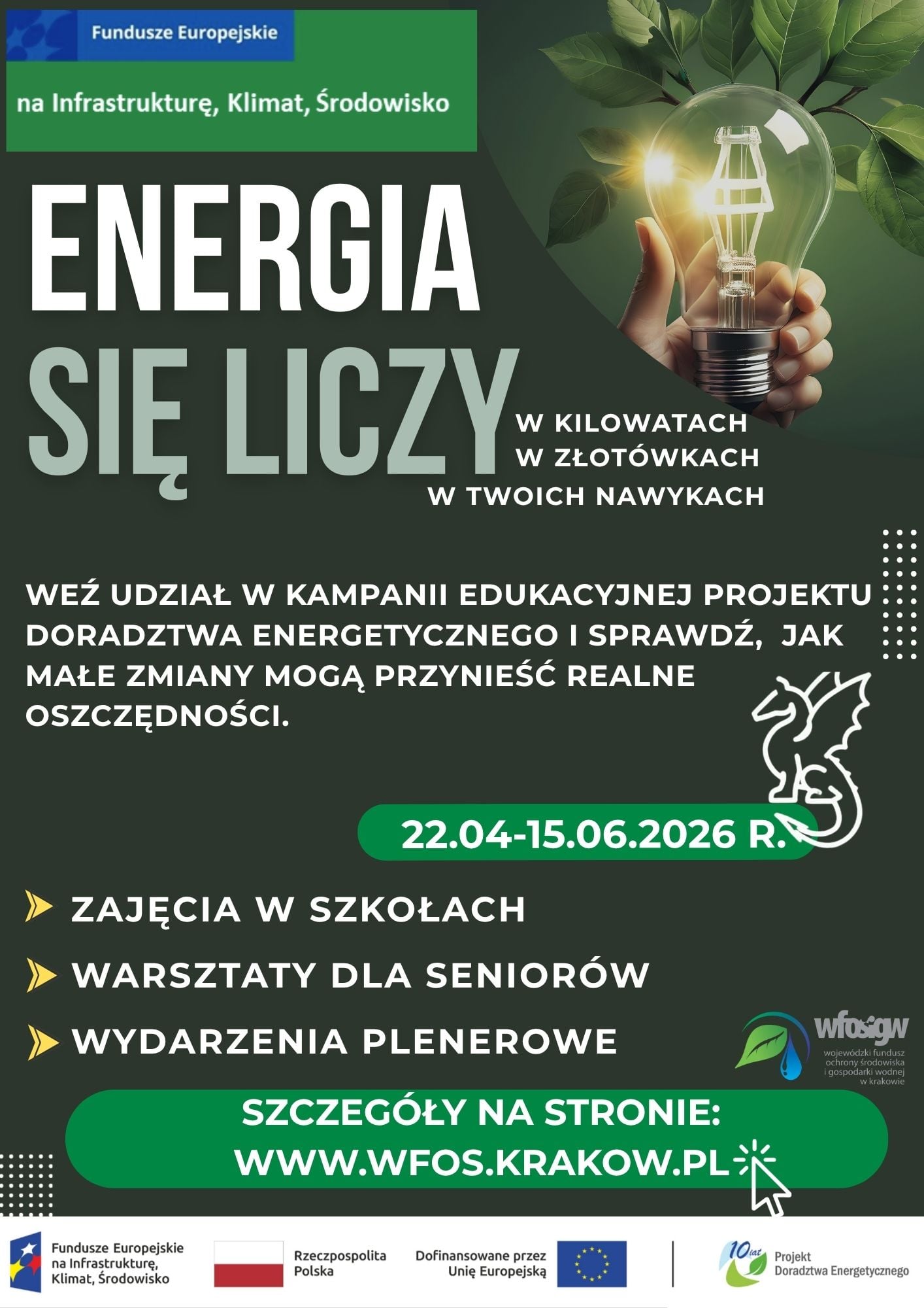 "Energia się liczy - w złotówkach, w kilowatach i w Twoich nawykach" - Kampania informacyjno-edukacyjna Doradców Energetycznych Wojewódzkiego Funduszu Ochrony Środowiska i Gospodarki Wodnej w Krakowie