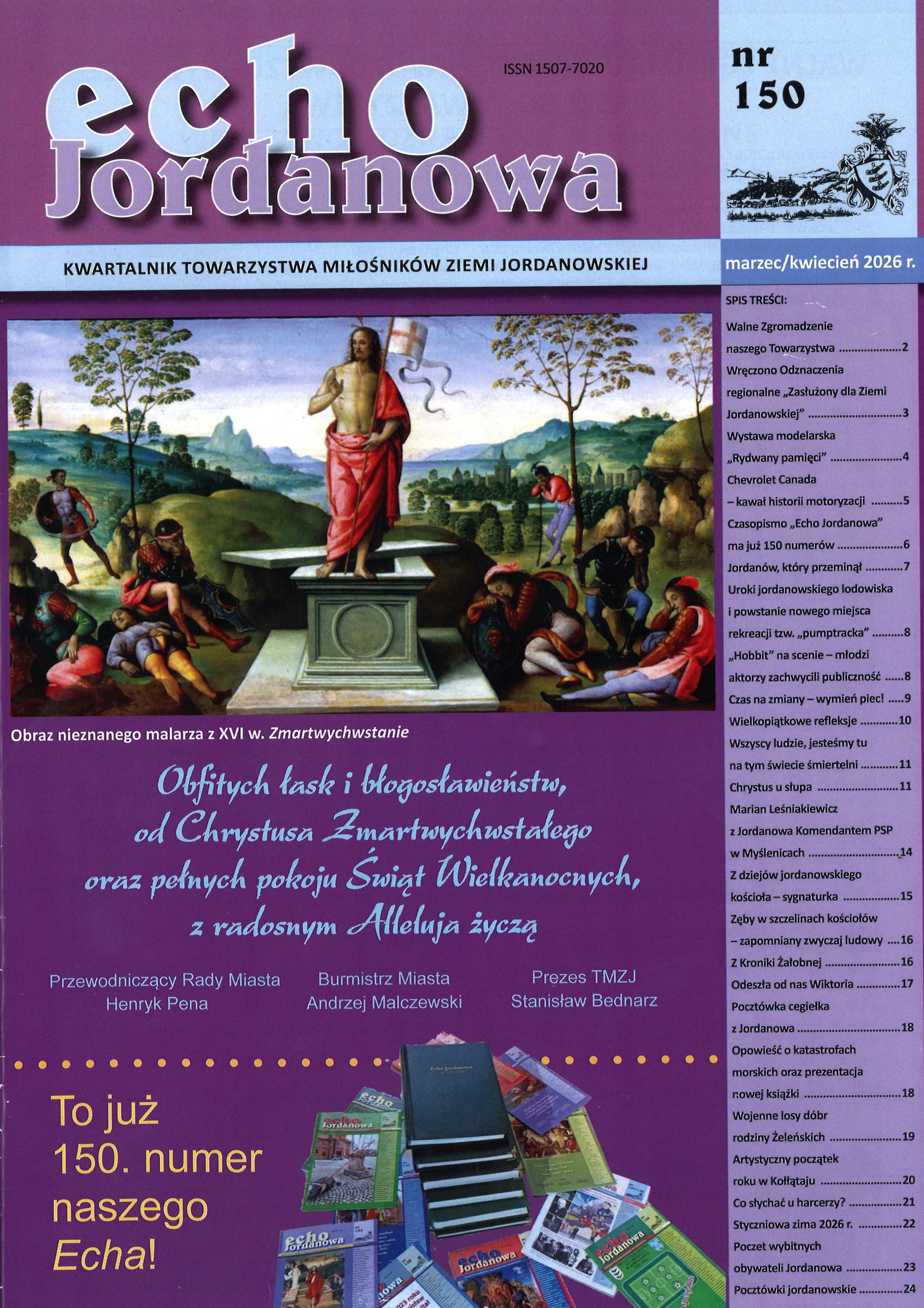 Chlubą Towarzystwa jest też poczytny kwartalnik "ECHO JORDANOWA" , którego 150 numer ukazał się na Wielkanoc.