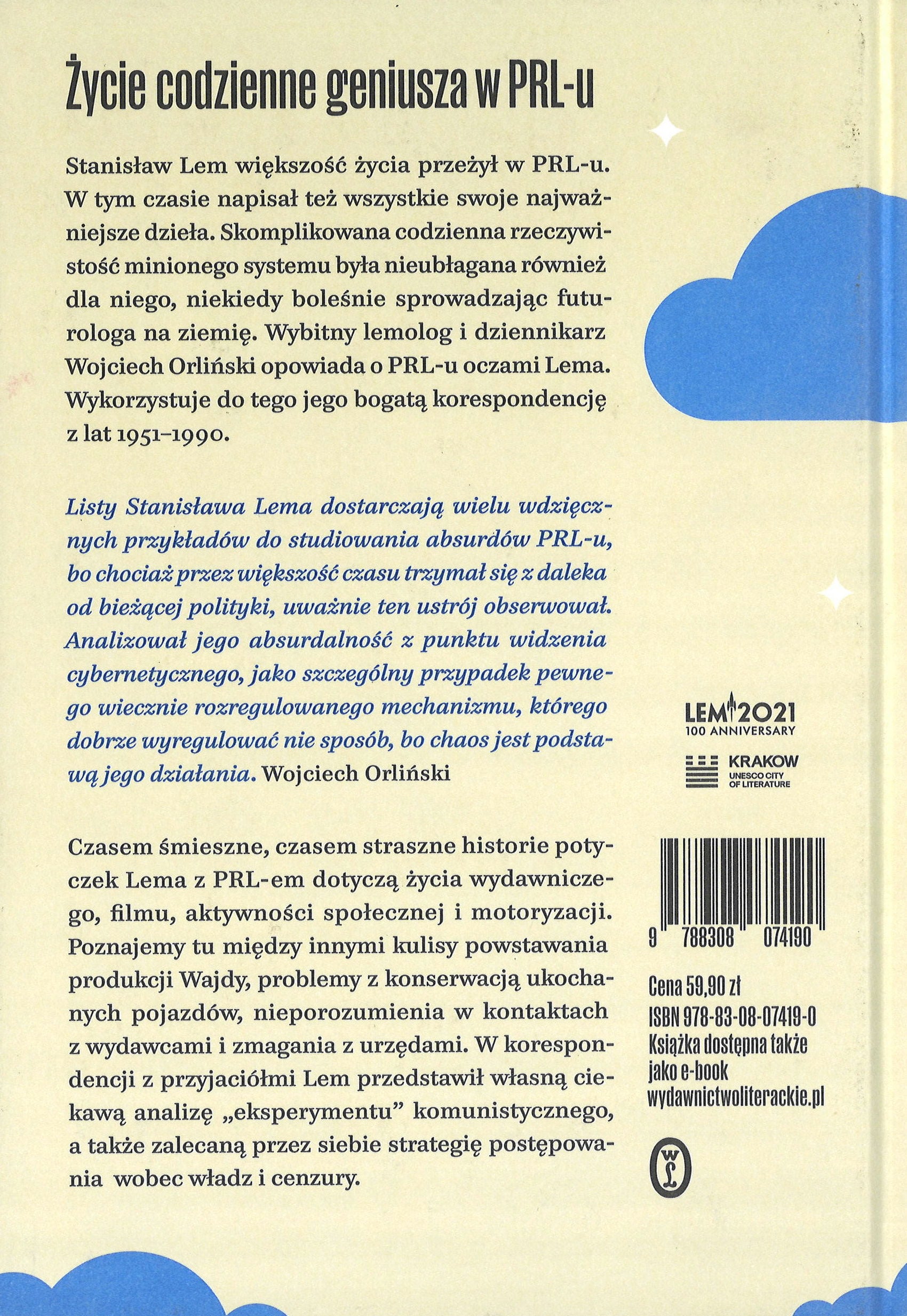 książka Wojciecha Orlińskiego "LEM W PRL-u czyli nieco prawdy w zwiększonej objętości.