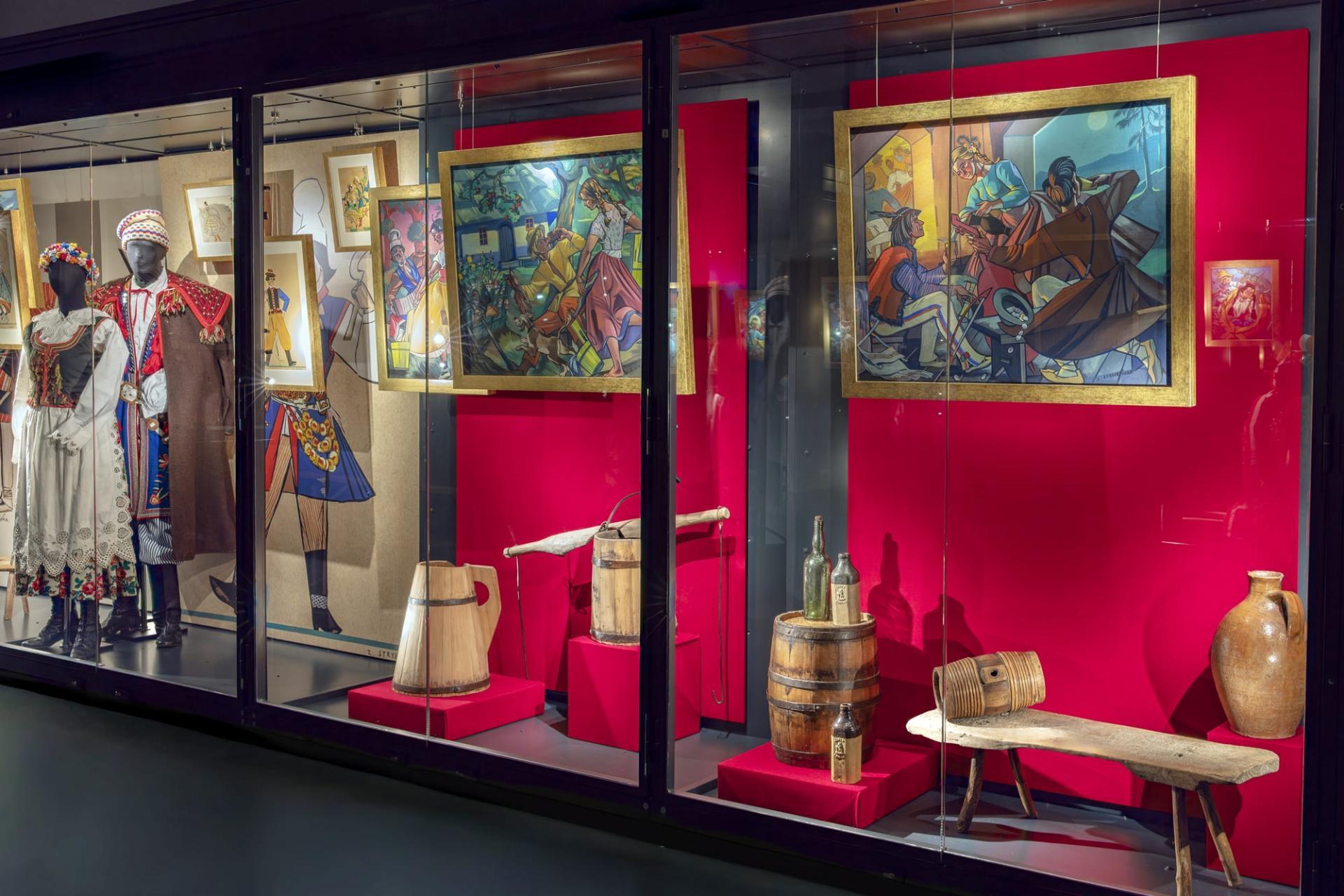 Eksponowane na wystawie prace Zofii Stryjeńskiej wzbogacają eksponaty etnograficzne, dzięki temu można łatwiej zrozumieć kontekst kulturowy, z którego wyrastała twórczość artystki.