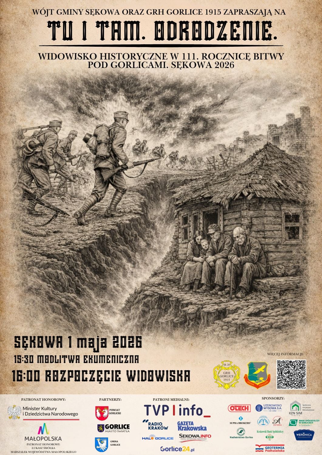 Sękowa zaprasza na widowisko historyczne. „Tu i tam. Odrodzenie” w 111. rocznicę Bitwy pod Gorlicami