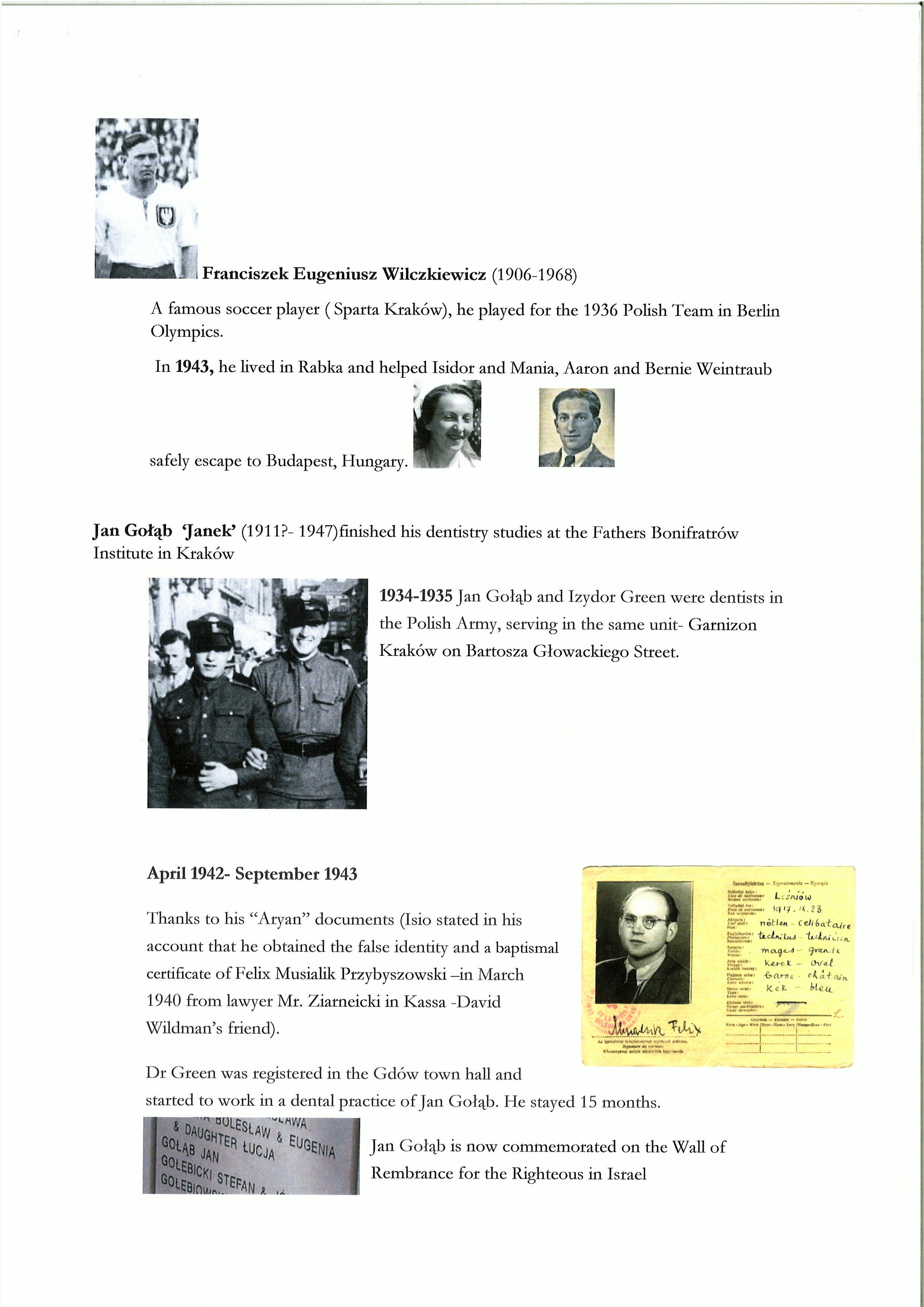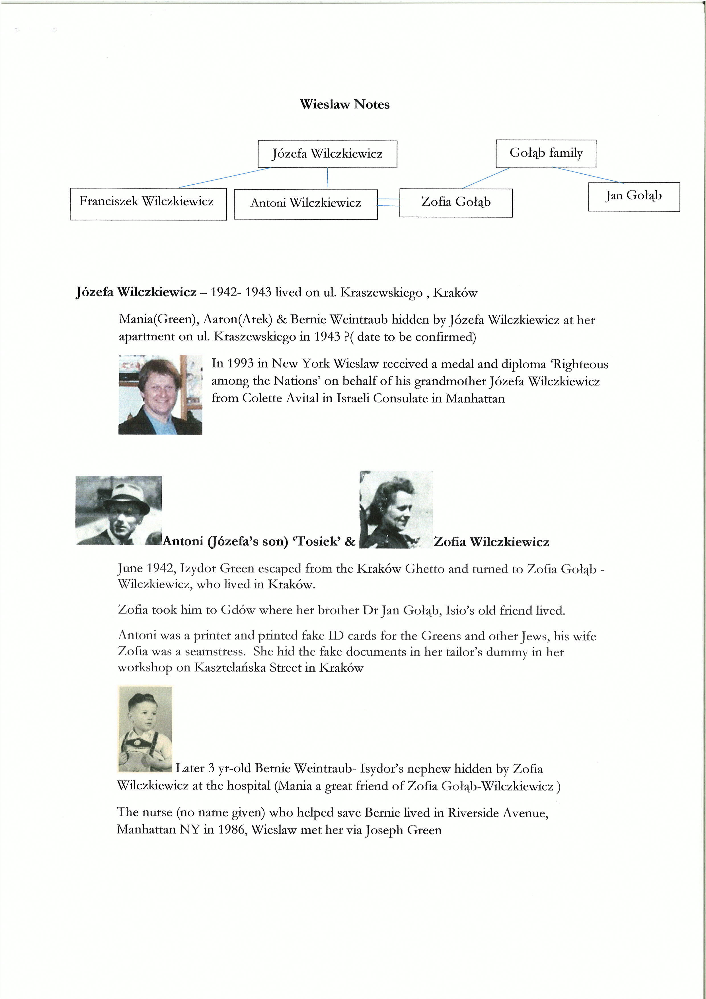 W czasie II wojny światowej rodzina Wilczkiewiczów pomagała ukrywać się przed Niemcami zarówno rodzinie Greenów jak i Weintraubów, aż do ich szczęśliwego przerzutu w 1943 r. na Węgry, do Budapesztu.
