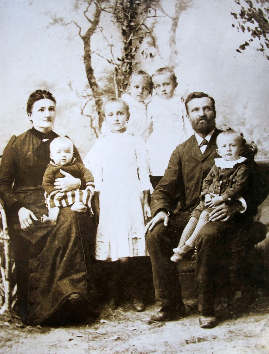 Franciszek Buszek zwany w Muszynie „Buszkiem Farbiarzem” z rodziną.