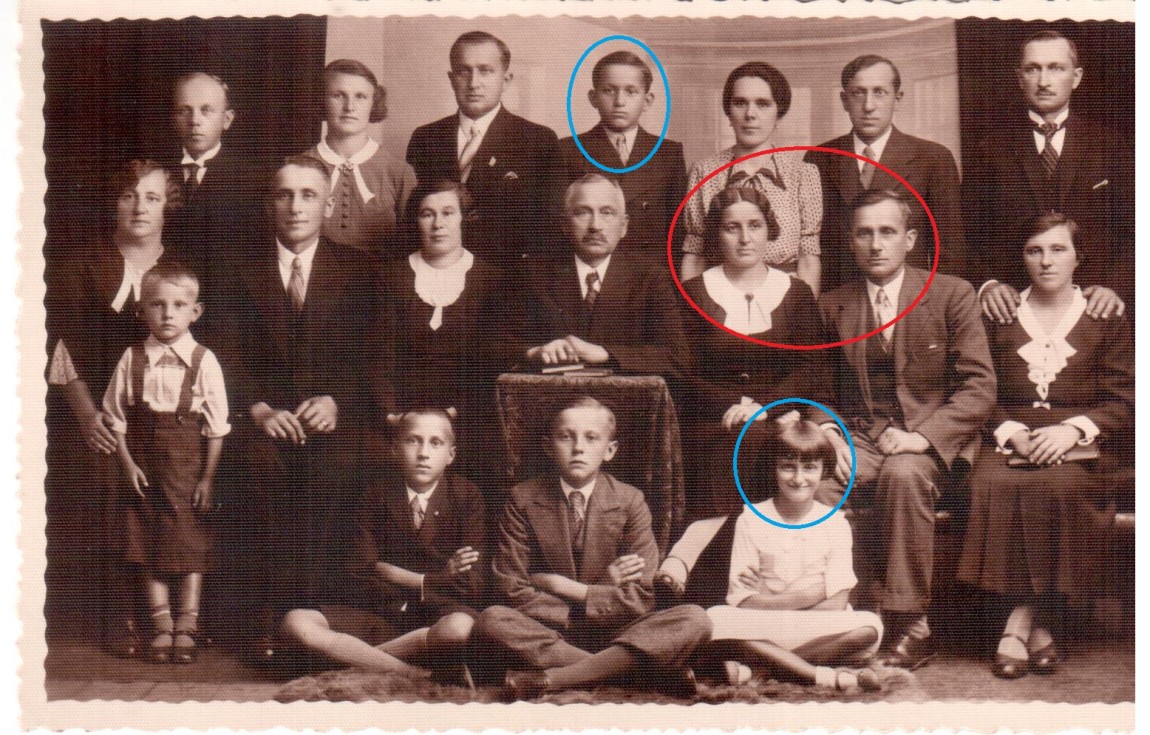 Na zdjęciu z rodzinnego zjazdu w latach 30. XX wieku, dziadek Zbigniewa Durczoka - Franciszek z babcią (zakreślony na czerwono), oraz jego ojciec i jego ciotka ( oznaczeni na niebiesko). W środku pradziadek Józef.
