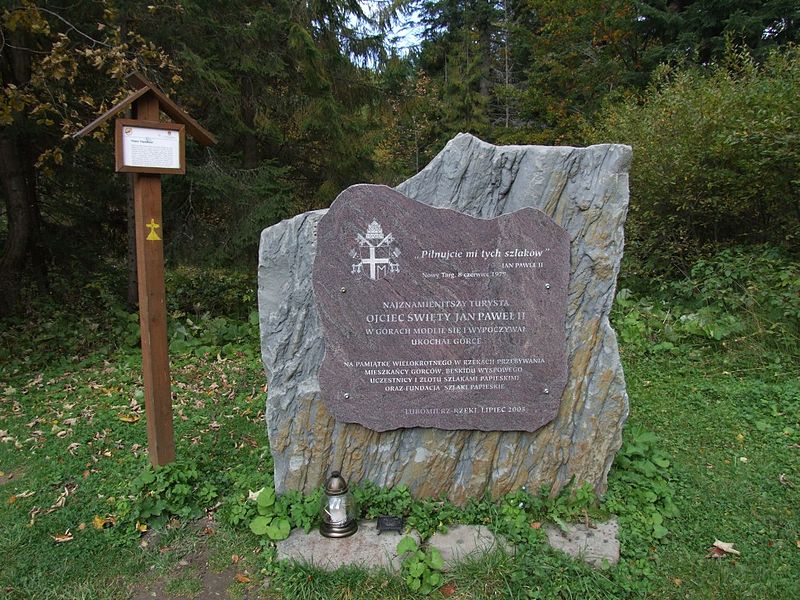 Dla uczczenia pobytu kardynała Karola Wojtyły na polanie Papieżówka umieszczono duży głaz z pamiątkową tablicą.