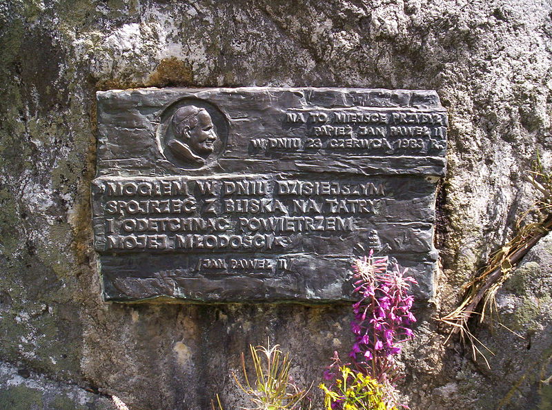 Znajduje się na niej napis cytujący słowa, które Karol Wojtyła już jako papież Jan Paweł II wygłosił w NOWYM TARGU w czasie pierwszej pielgrzymki do Polski: „Pilnujcie mi tych szlaków”.