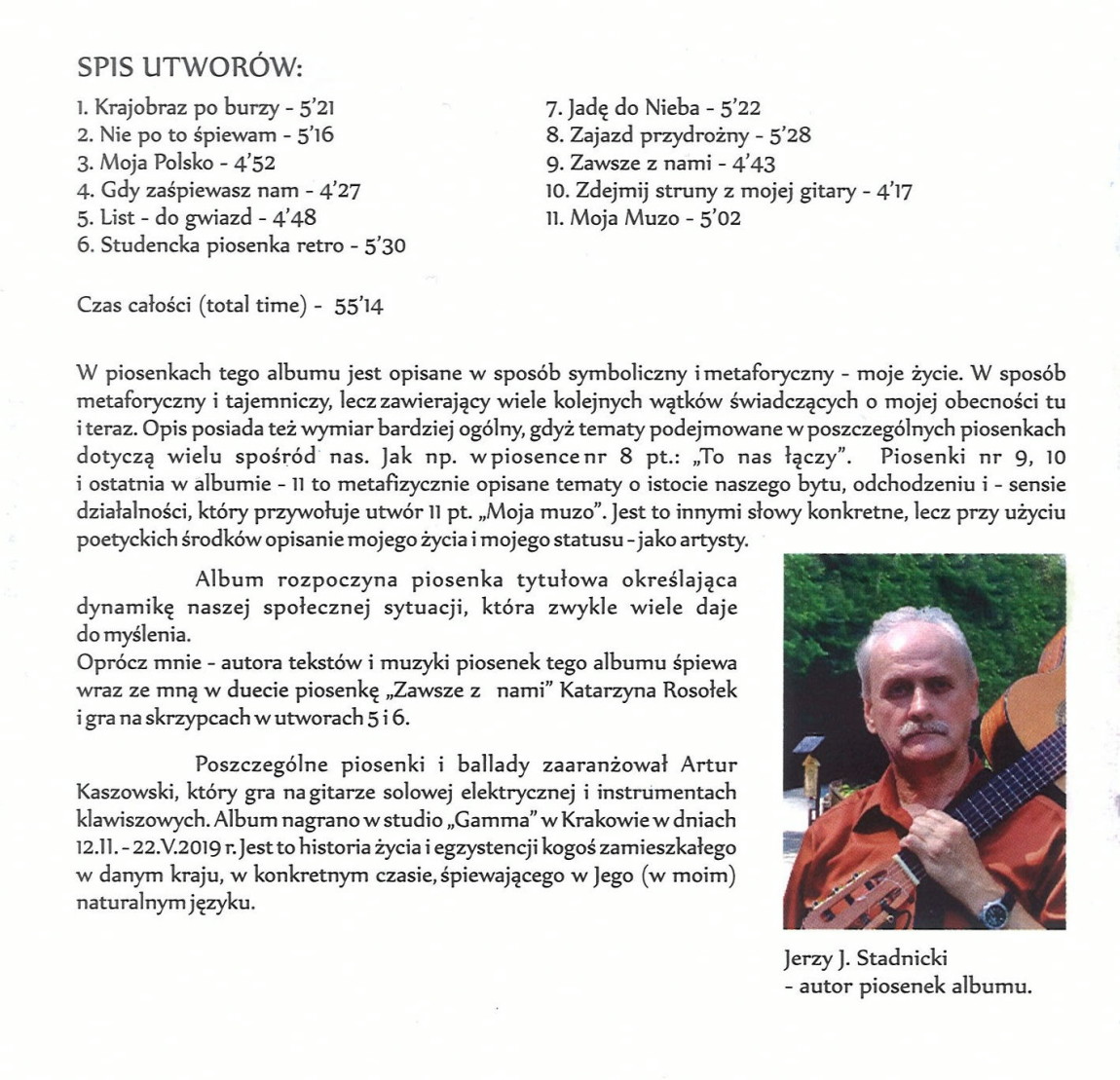Jest również bardem opisującym swoje życie poprzez muzykę. Komponuje i pisze teksty, a niedawno ukazała się jego czwarta płyta zatytułowana "KRAJOBRAZ PO BURZY".