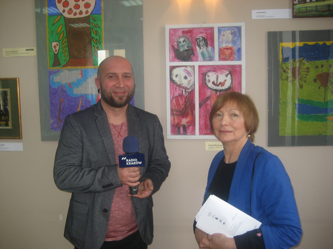 Prof. GRAŻYNA BOROWIK - PIENIEK (przewodnicząca jury) oraz SEBASTIAN KACZMARSKI (terapeuta ze Środowiskowego Domu Pomocy w BLIZNEM k/Brzozowa).