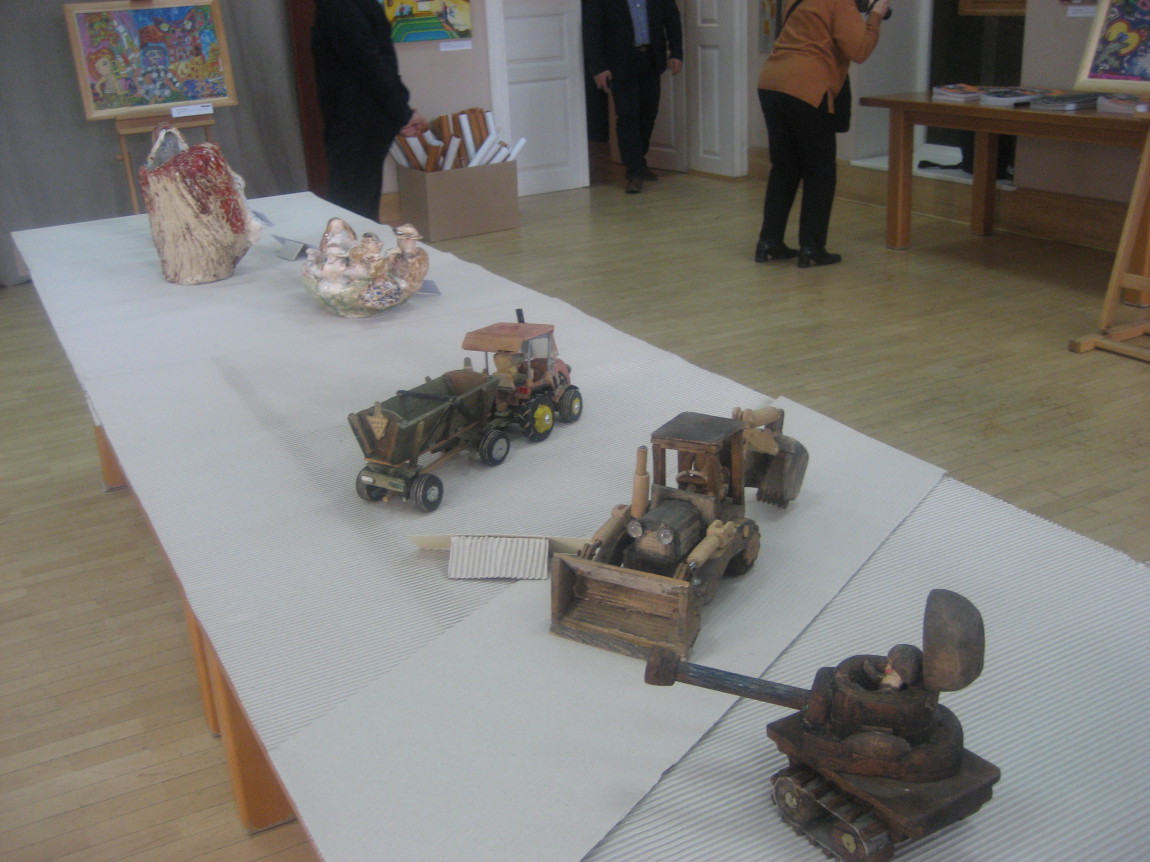 Poniżej prace JÓZEFA TARNAWSKIEGO (nagroda specjalna) pt.: „Koprako-spycharka”, „Traktor z przyczepą” i „Czołg”.