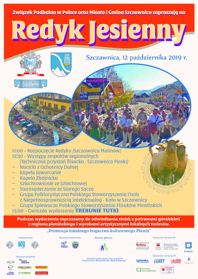 Sobotni (12.10. 2019 r.) "Redyk Jesienny" w SZCZAWNICY jest jednym z punktów obchodów 100. lecia Związku Podhalan w Polsce i zarazem 45. lecia reaktywacji Oddziału Pienińskiego w SZCZAWNICY.