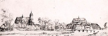 Most Królewski – rycina Józefa Brodowskiego z 1820 r. Widok na Kazimierz, widoczne kościoły Bożego Ciała (po lewej) i św. Katarzyny (ponad mostem). (fot.Wikipedia).