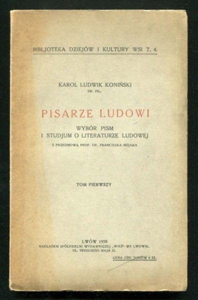 KAROL LUDWIK KONIŃSKI (1891 Lwów - 1943 Rudawa k/Krakowa) był publicystką, krytykiem literackim, prozaikiem i badaczem kultury ludowej. W 1938 r. wydał antologię " Pisarze ludowi".