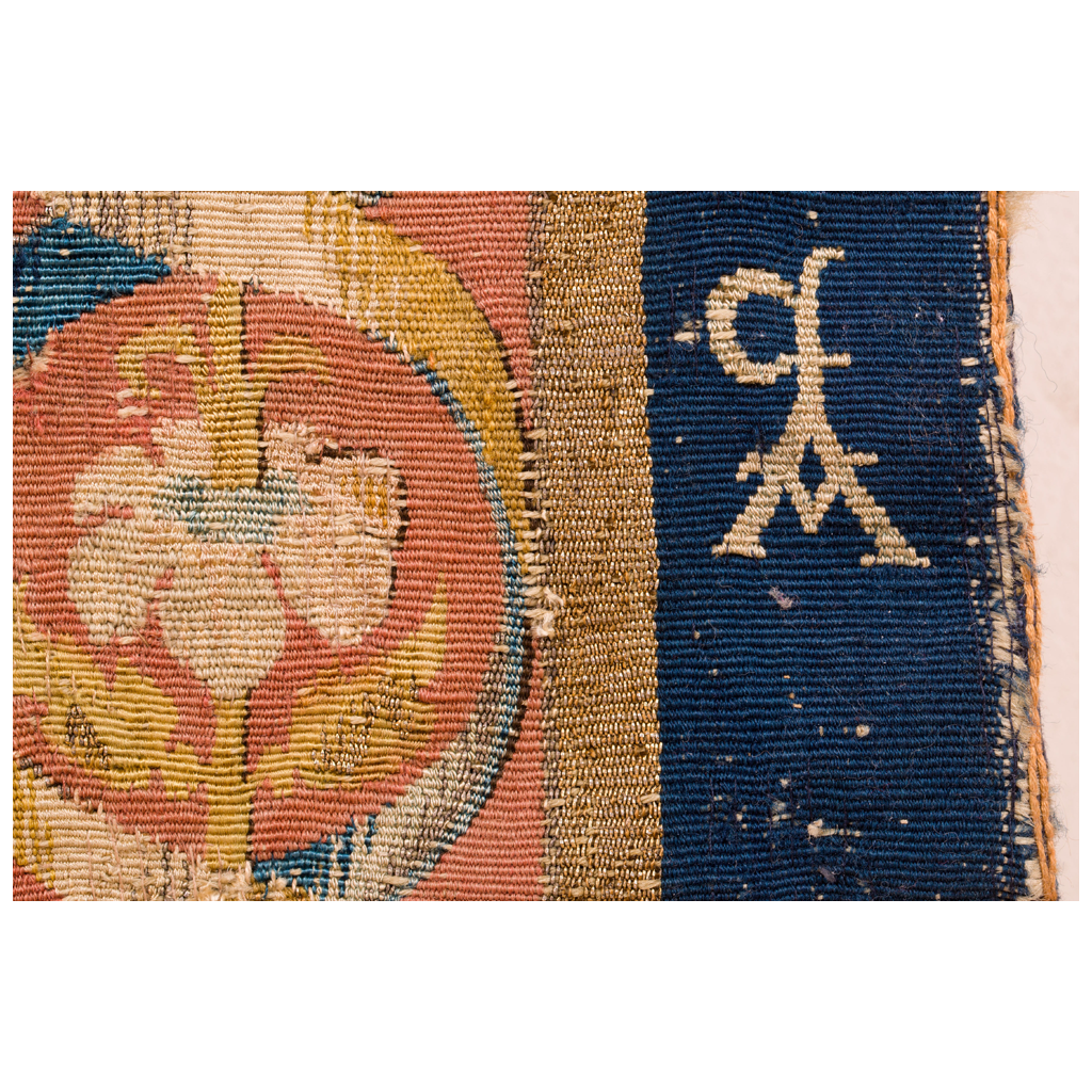 Znak tkacki Pietera van Aelsta młodszego w prawym dolnym rogu arrasu Rozmowa Noego z Bogiem, Zamek Królewski na Wawelu