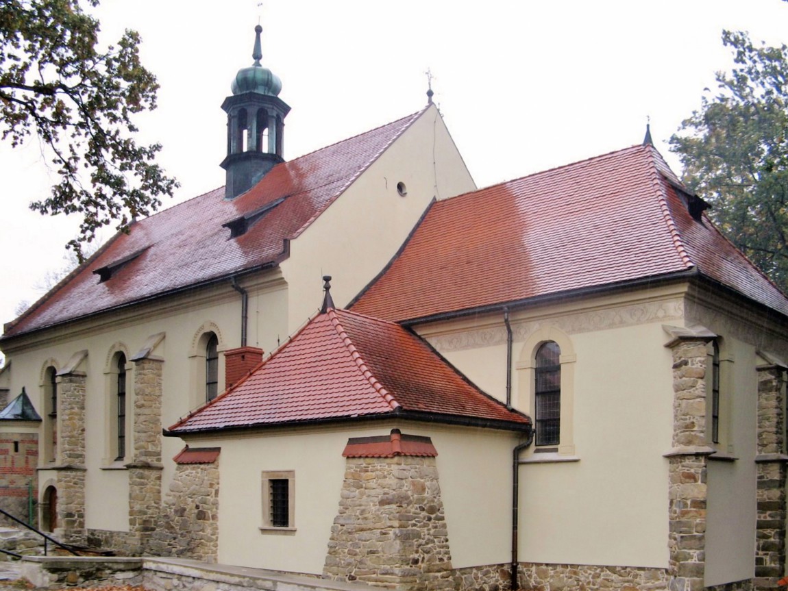 Od diabelskich nut i szatańskich podszeptów uwolni nas wizyta w położonym nieopodal, na wzniesieniu, okazałym kościele p.w. Nawiedzenia NMPanny. Właściwie to dwa kościoły w jednym imponującym kompleksie świątynnym. Przez nowszy, ogromny, neogotycki kościół z elementami romańskimi można przejść umyślnie zbudowanym korytarzem do starego kościoła, z początku XVII wieku, w którym fundator, były właściciel Suchej, Piotr Komorowski, osadził księży Kanoników Regularnych Laterańskich z kościoła Bożego Ciała w Krakowie, w związku ze swoim z cudownym uzdrowieniem za przyczyną Św. Stanisława Kazimierczyka - patrona konwentu.