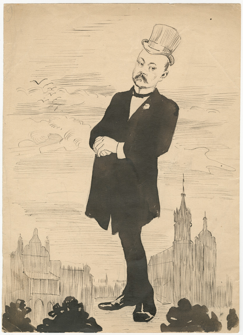 Karykatura prezydenta Juliusza Leo, rys. Wincenty Wodzinowski, 1910 r., MHK-2501-VIII. Fot. dzięki uprzejmości MHK