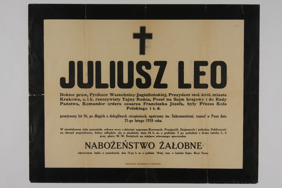 Dokumenty, o których mowa, będzie można obejrzeć już w środę (21 lutego 2018 r.) w Urzędzie Miasta Krakowa podczas konferencji „Prezydent Juliusz Leo i Kraków jego czasów” organizowanej m.in. przez Archiwum Narodowe w Krakowie i Towarzystwo Miłośników Historii i Zabytków Krakowa.