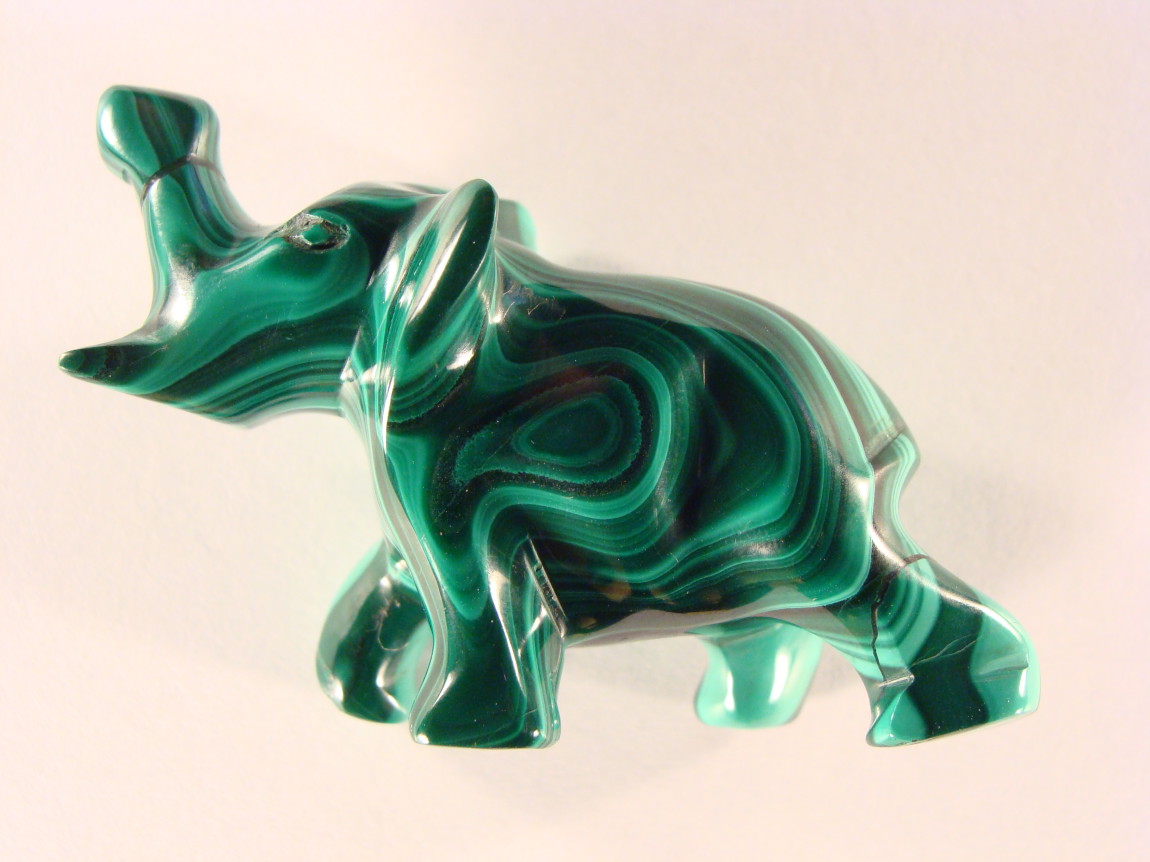 Słoń z malachitu Cu2CO3(OH)2. Katanga, Demokratyczna Republika Konga. Centrum Edukacji Przyrodniczej UJ, Dział Geologiczny, fot. S. Florjan