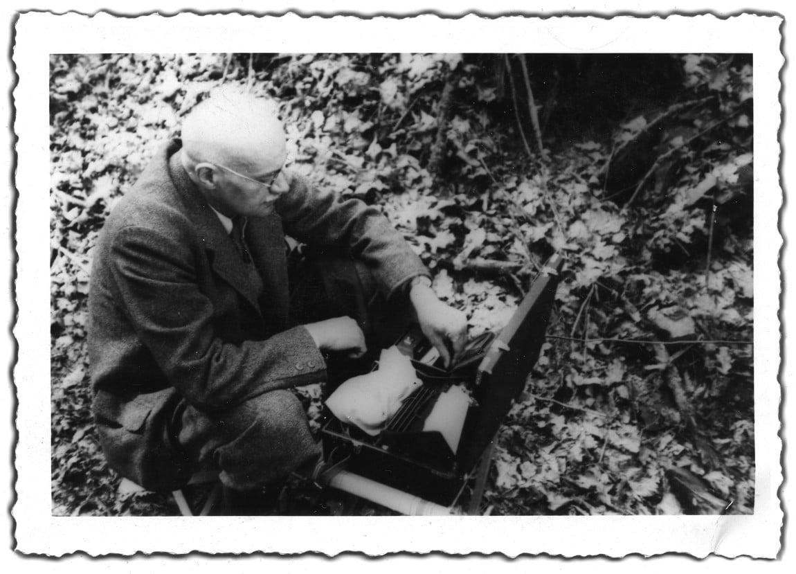 Jan Włodek w trakcie prac badawczych na polach dąbrowickich. Maj 1939 . Fot .Zbiory rodziny Włodków z Dąbrowicy