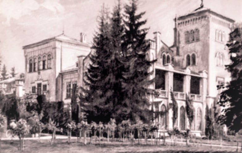 Do fotografii podpis w książce H.Mycielskiej "Pośród klęsk i zwyciestw" : Pałac w Boryniczach. Budowę rozpoczął (ok 1870) Antoni hr. Dembiński a zakończył nasz dziadek, Stanisław Mycielski. Spalony przez Moskali (1914). Rekonstrukcje pałacu przez naszego Ojca przerwała II wojna światowa. W 2006 roku Jacek z Jola ( żona Jacka Mycielskiego -przyp.) odwiedzili miejsce: z całego budynku pozostała tylko kaplica, zamieniona teraz na magazyn gospodarczy