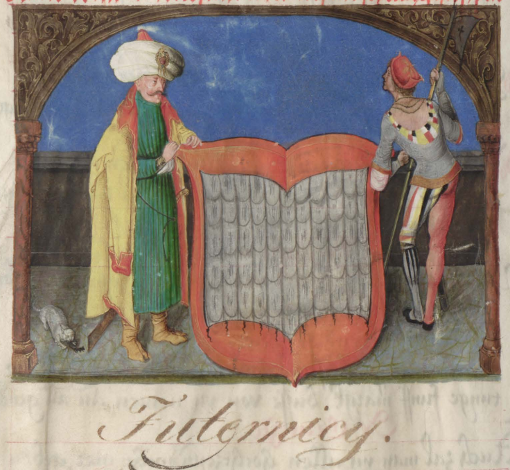 Kodeks Baltazara Behema, miniatura z herbem kuśnierzy, ok 1506, Biblioteka Jagiellońska, BJ Rkp. 16