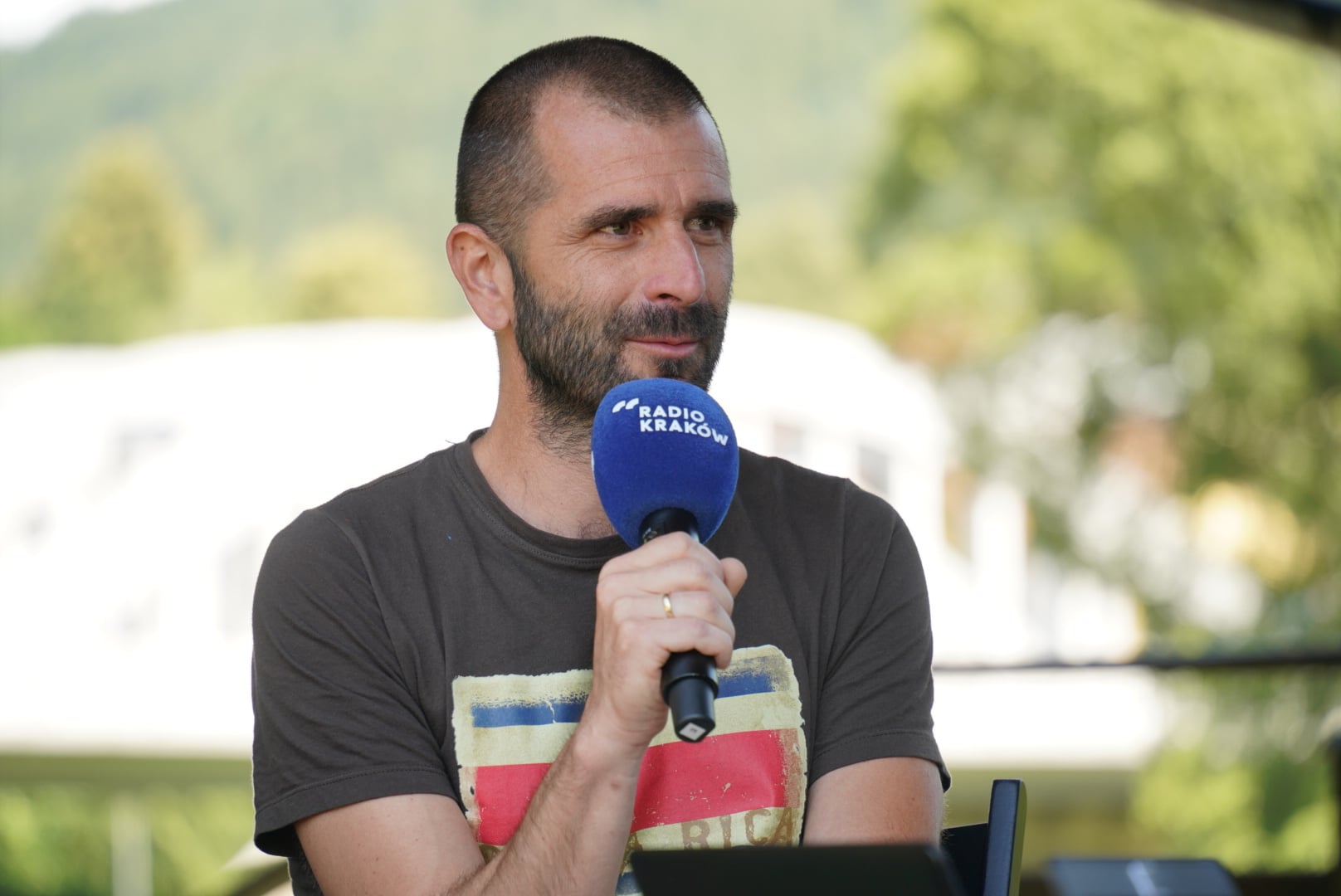 Jan Kubik w plenerowym studiu Radia Kraków