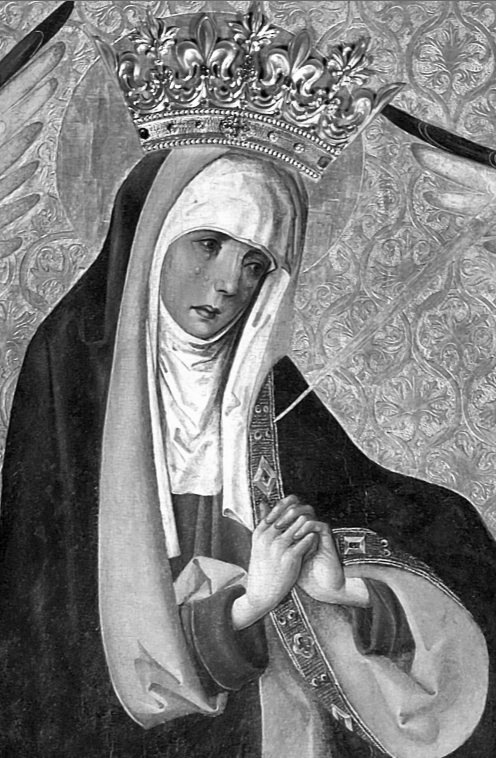 Fragment obrazu Matki Boskiej Bolesnej wg: "Malarstwo Gotyckie w Polsce", red. Adam S. Labuda, Krystyna Secomska, Warszawa 2004, t. III: Ilustracje, il. 604, fot. S. Stępniewski, 1984.
