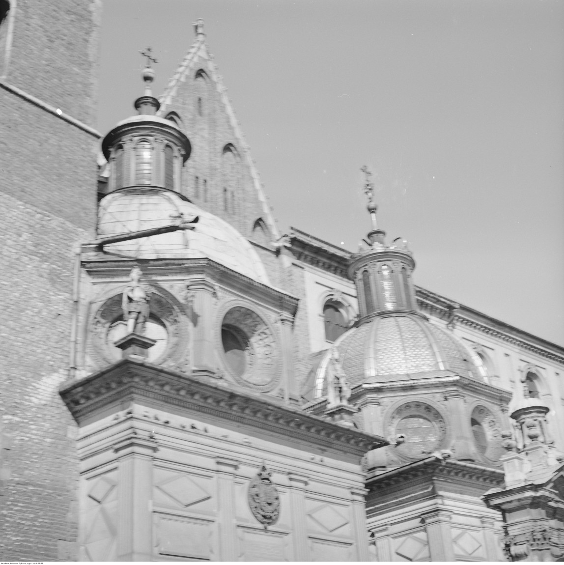 Fragment katedry na Wawelu - kopuły kaplic: Wazów (z lewej), Zygmuntowskiej. Fot. NAC