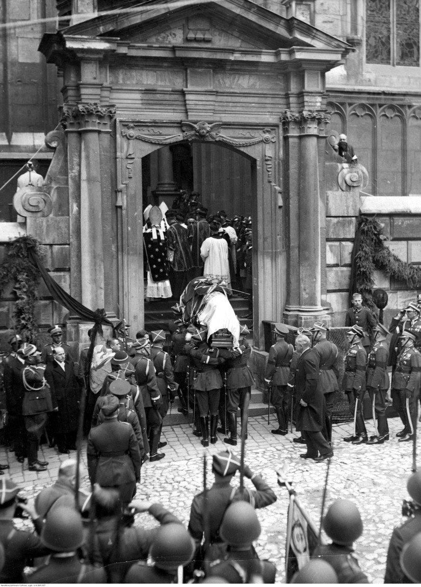 Uroczystości pogrzebowe Józefa Piłsudskiego w Krakowie. Wniesienie trumny do katedry na Wawelu. Maj, 1935. Fot. NAC