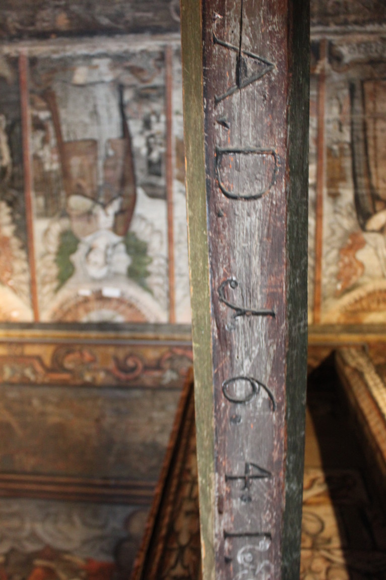 Belka z wyrytą datą 1641 w kościele w Binarowej