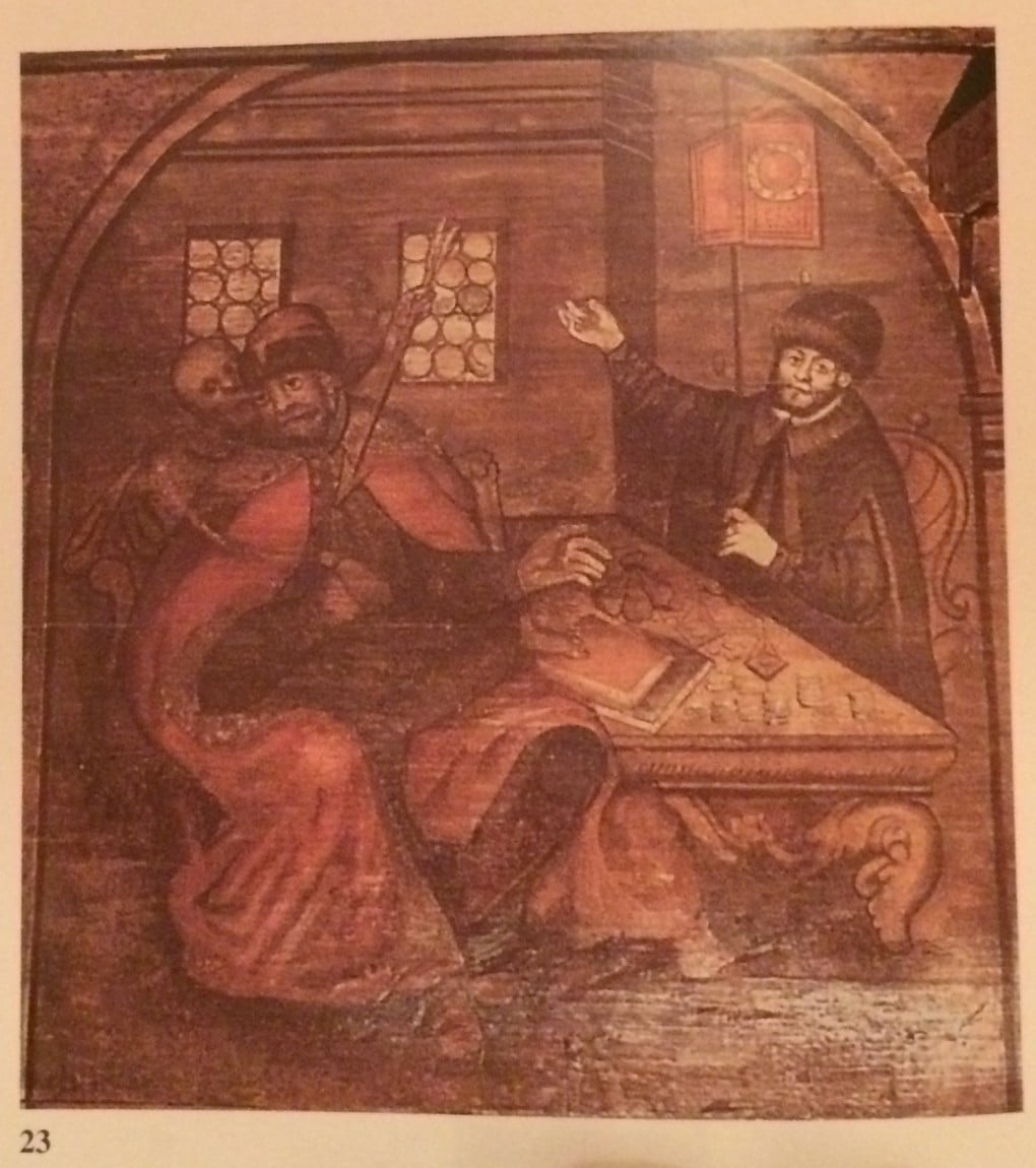 Scena "Rozdroża życia Ludzkiego", ściana południowa nawy w kościele w Binarowej