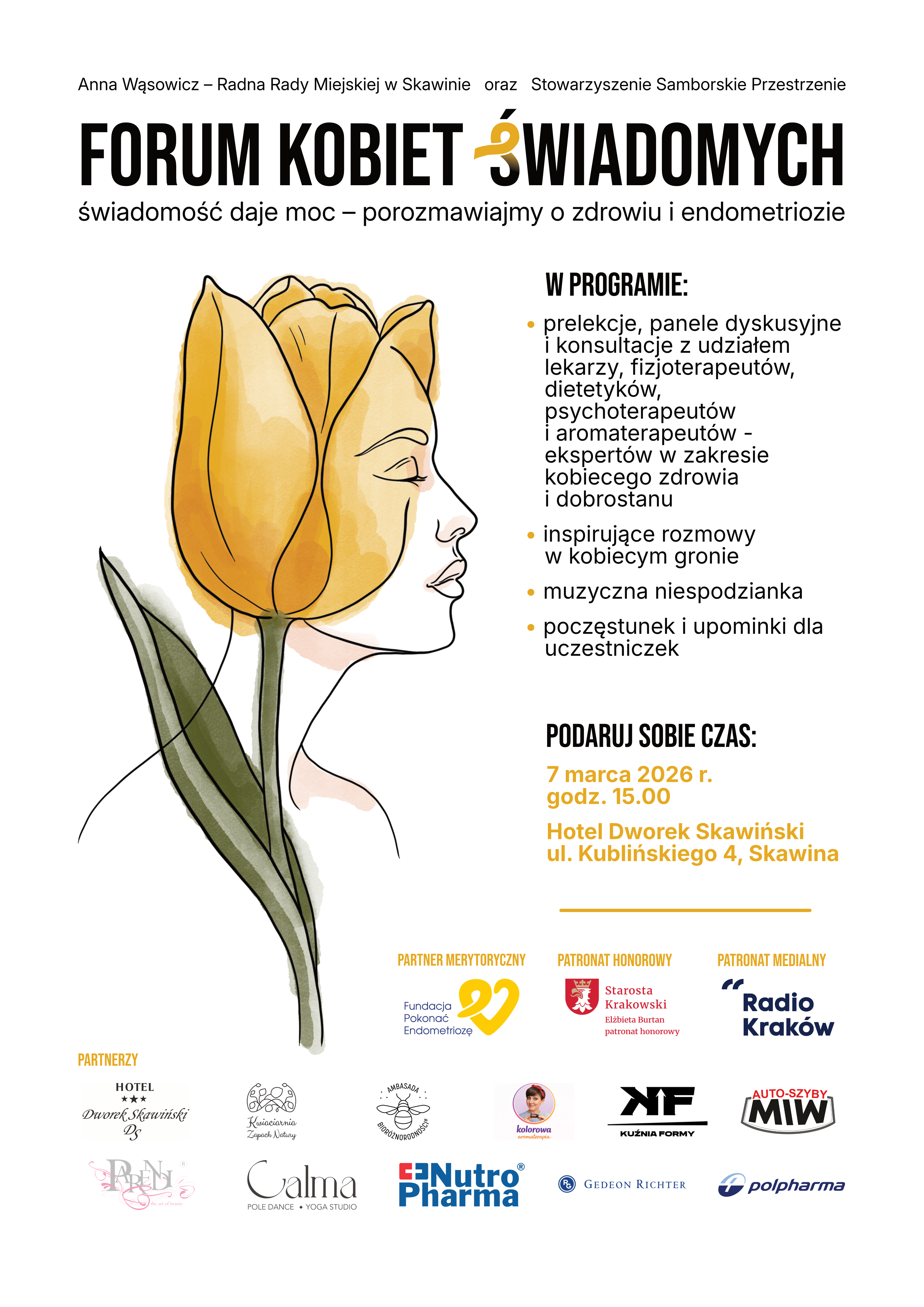Zbliża się V edycja Forum Kobiet Świadomych – wydarzenie, które w Skawinie stało się przestrzenią rozmowy o zdrowiu, emocjach, rozwoju i kobiecej solidarności. W tym roku tematem przewodnim będzie endometrioza, choroba, o której jeszcze kilka lat temu mówiło się szeptem.