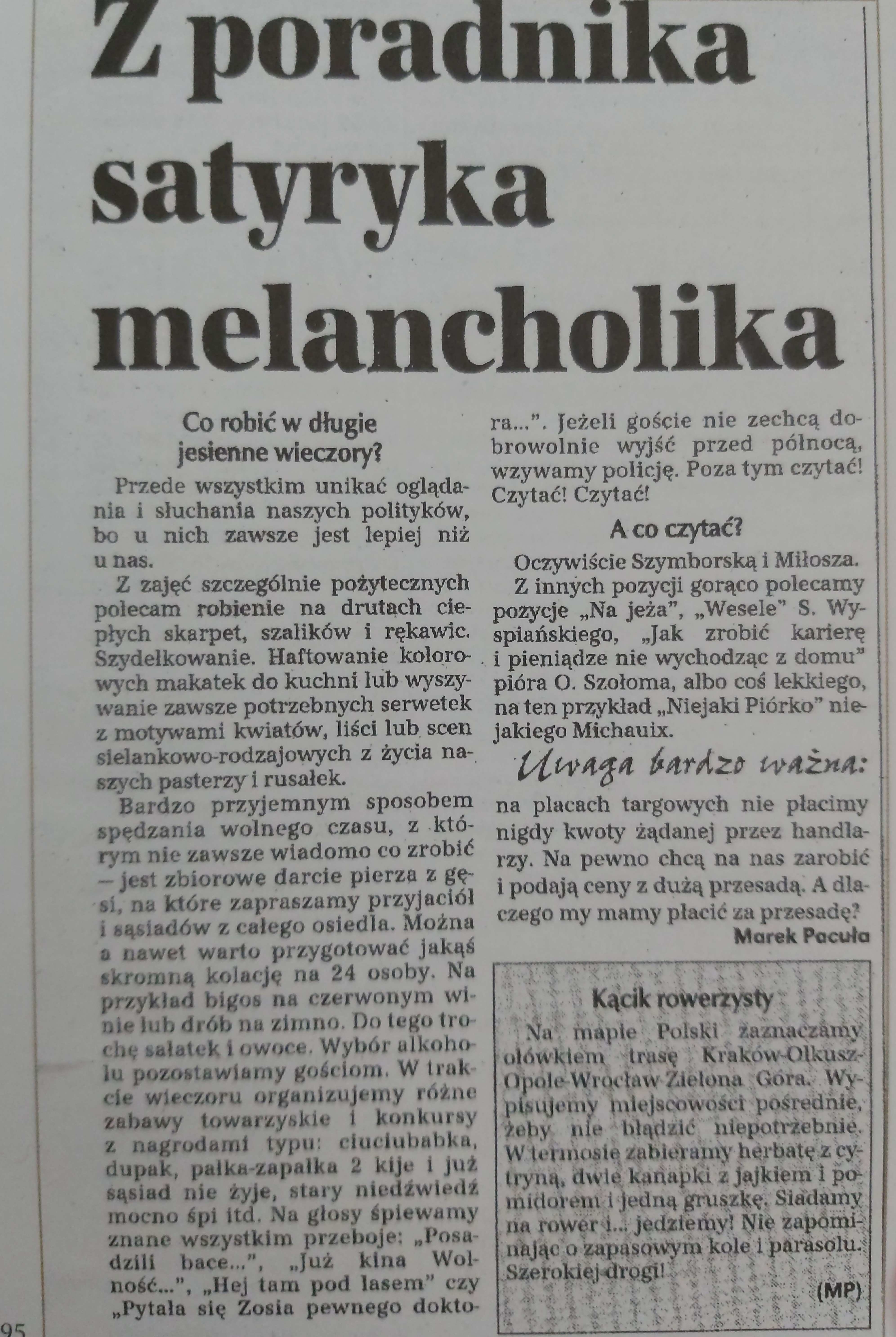 (cyt. za :A. Pacuła – „Marek Pacuła. Satyryk z własnym tekstem. Biografia artystyczna” s. 260)