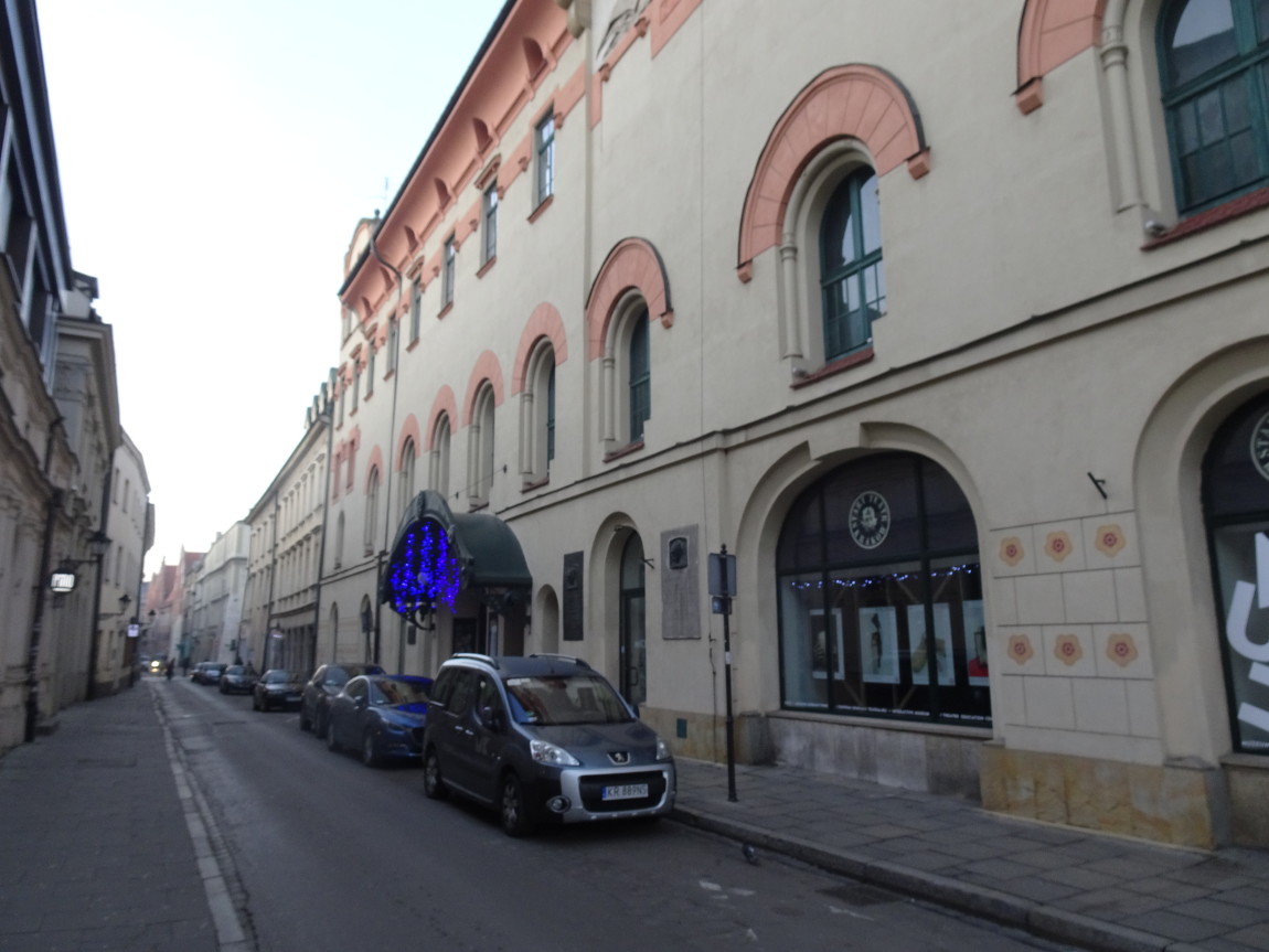 Jagiellońska, niczym portret Krakowa XX wieku : od Narodowego Starego Teatru przez cukiernię i turystykę górską do sklepu antykwarycznego i uniwersytetu.