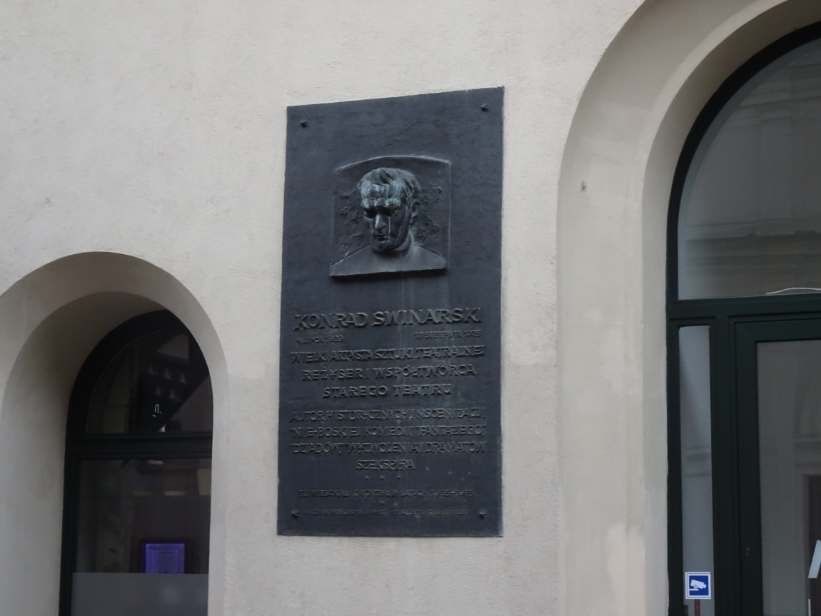Narodowy Stary Teatr. Absolutny cud lat 70. ubiegłego wieku i najlepszy podówczas teatr w Polsce. Bez wątpienia (przy niezwykle marnych warunkach socjalnych). Tryumfalny pochód przez kraj (dławiony cenzurą, jednopartyjną nomenklaturą i niemożnością otwartych kontaktów ze światem) rozpoczęła premiera „Dziadów - Cz.III” w reżyserii Konrada Swinarskiego w r. 1972. Cztery lata po zdjęciu „Dziadów” z afisza w Warszawie, w 1968 r. Tę tablicę dla pamięci reżysera wmurowano w ścianę gmachu obok tablic upamiętniających Władysława Żeleńskiego i Wiktora Sadeckiego.