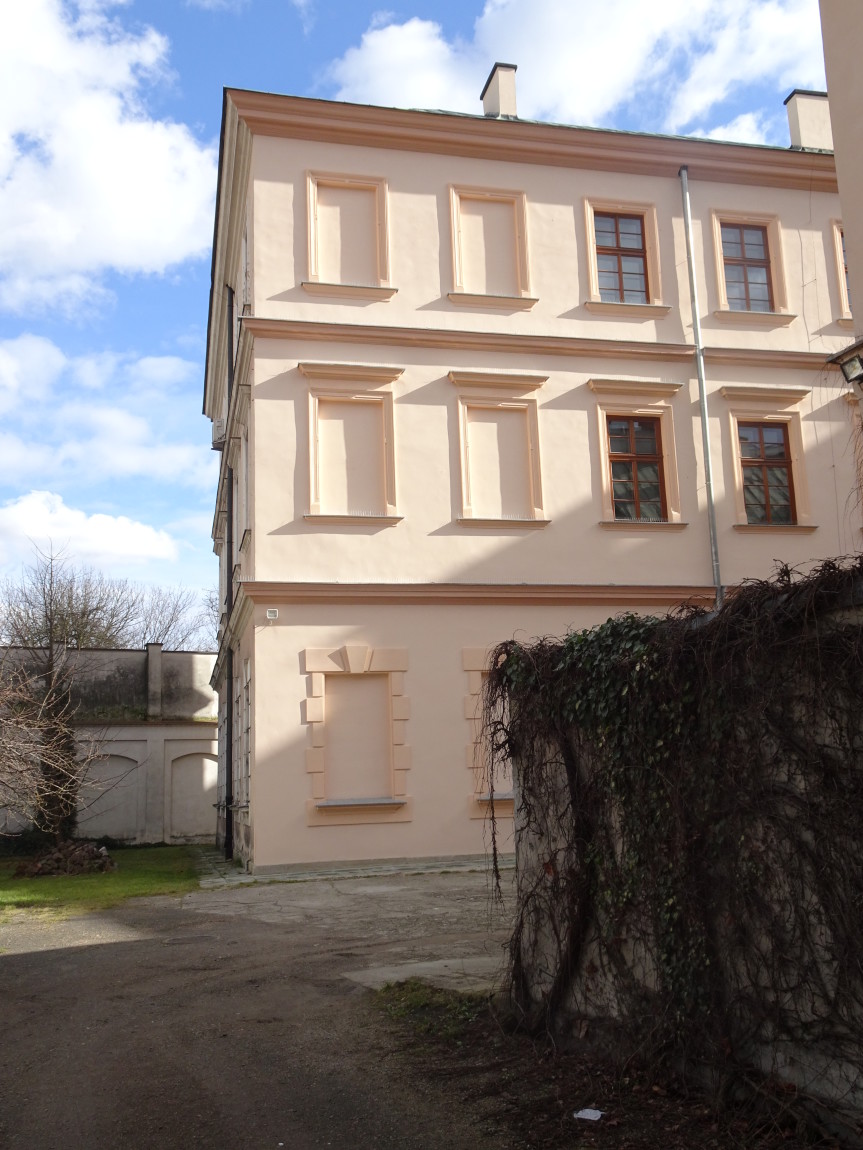 Satelitarne zdjęcie Senackiej ukazuje nam dobudowane w 1848 r. skrzydło (na żółto), areszt (na zielono) i frontową, dobudowaną w l. 70. XIX w. część dzisiejszego Collegium Broscianum (Grodzka 52, na czerwono)