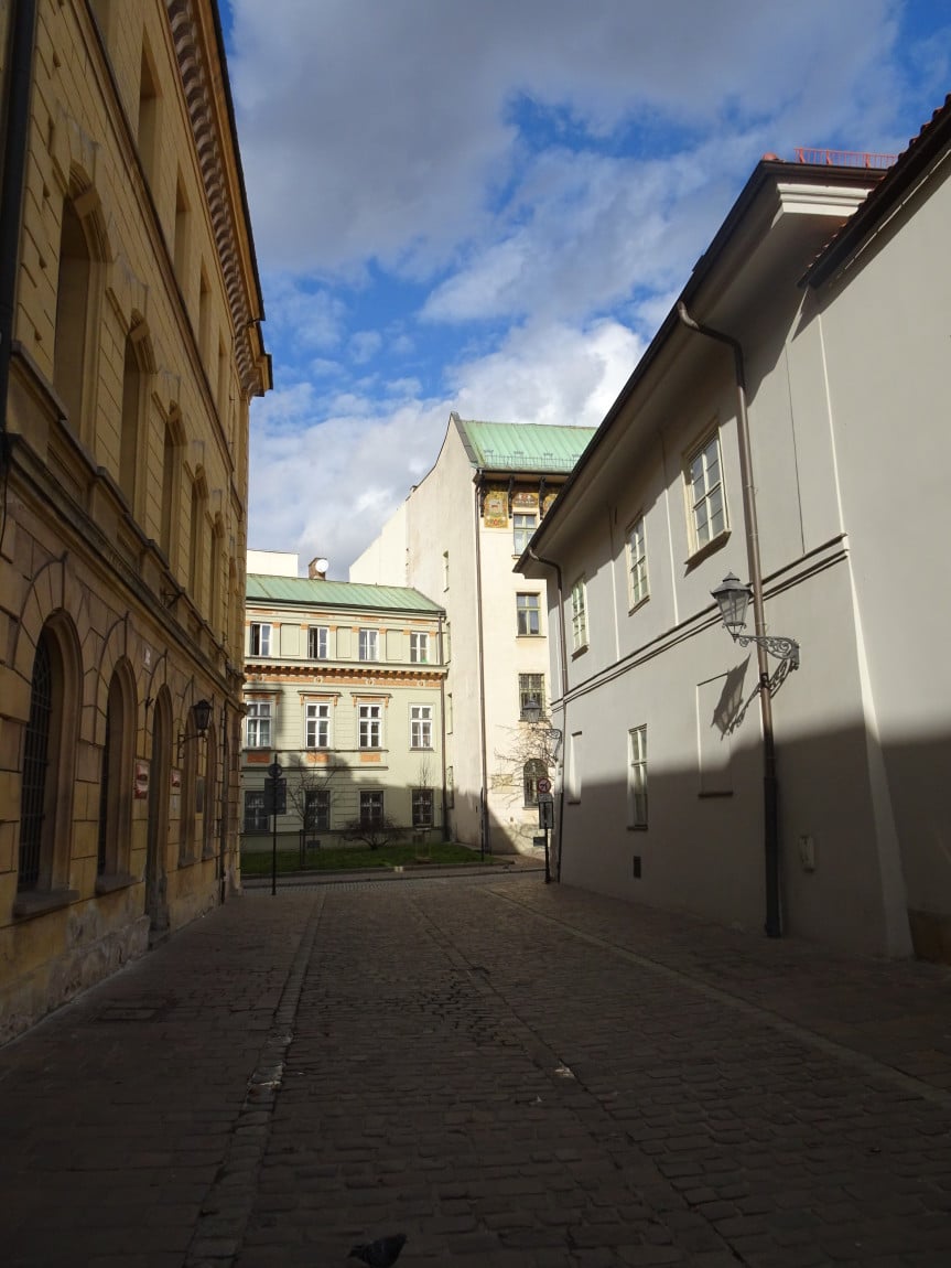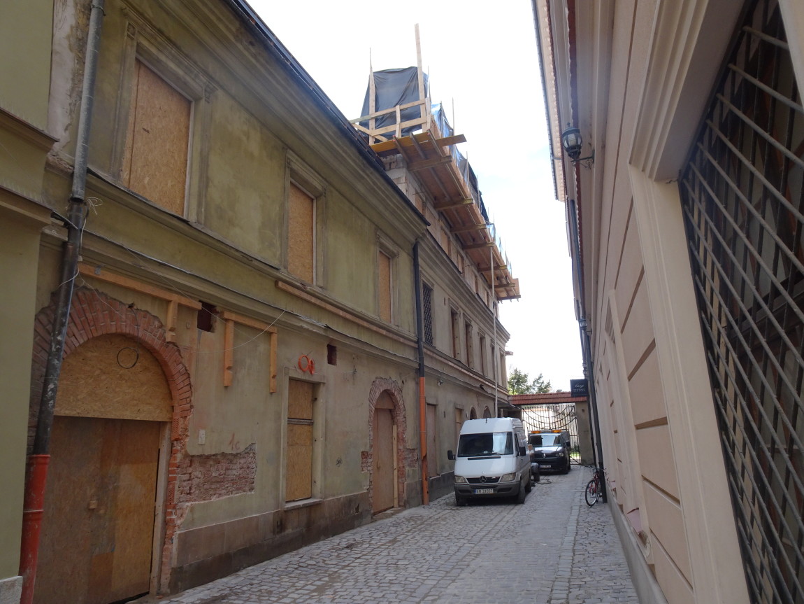 A oto i podworczyk za żelazną bramą - i część uliczki do niego prowadząca. Zanim powstał klasztorek żeński przy ul.Poselskiej, to koniec Senackiej łączył się z ul. Poselską, tj z tą jej częścią, która prowadzi ku kościołowi św. Trójcy (dominikanów).
