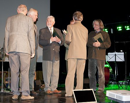 Prof. Zygmunt Denisiuk (na zdj. trzeci od lewej), w 2013 r. został wyróżniony Bieszczadzkim Niedźwiedziem. (fot.serwis internetowy Bieszczadzkiego Parku Narodowego).