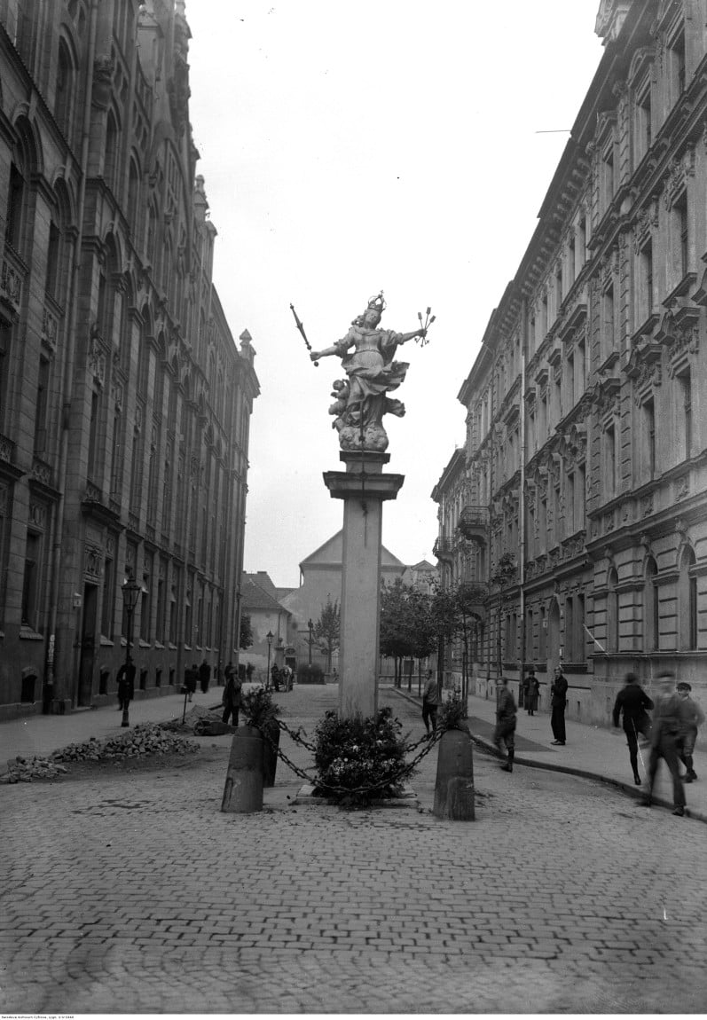 Aktualna lokalizacja figury Matki Boskiej Łaskawej z cmentarza przy kościele Mariackim
