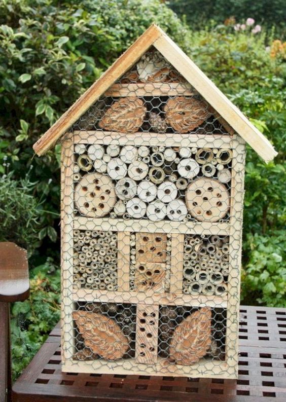 Takie domki możemy stworzyć zupełnie sami i nie są do tego potrzebne żadne specjalne umiejętności czy zasobny budżet. Wręcz możemy wykorzystać do ich zbudowania materiały, które zazwyczaj lądują na kompoście lub w śmietniku. Na ściany i dach domku możemy użyć starych desek, a z cienkiej sklejki zrobimy tylną ściankę domku i wiatr nie będzie wywiewać mieszkańców. Widziałam domki dla owadów zrobione w starej szafce, a wtedy kiedy dysponujemy dużym ogrodem, domek można zbudować nawet z palet.