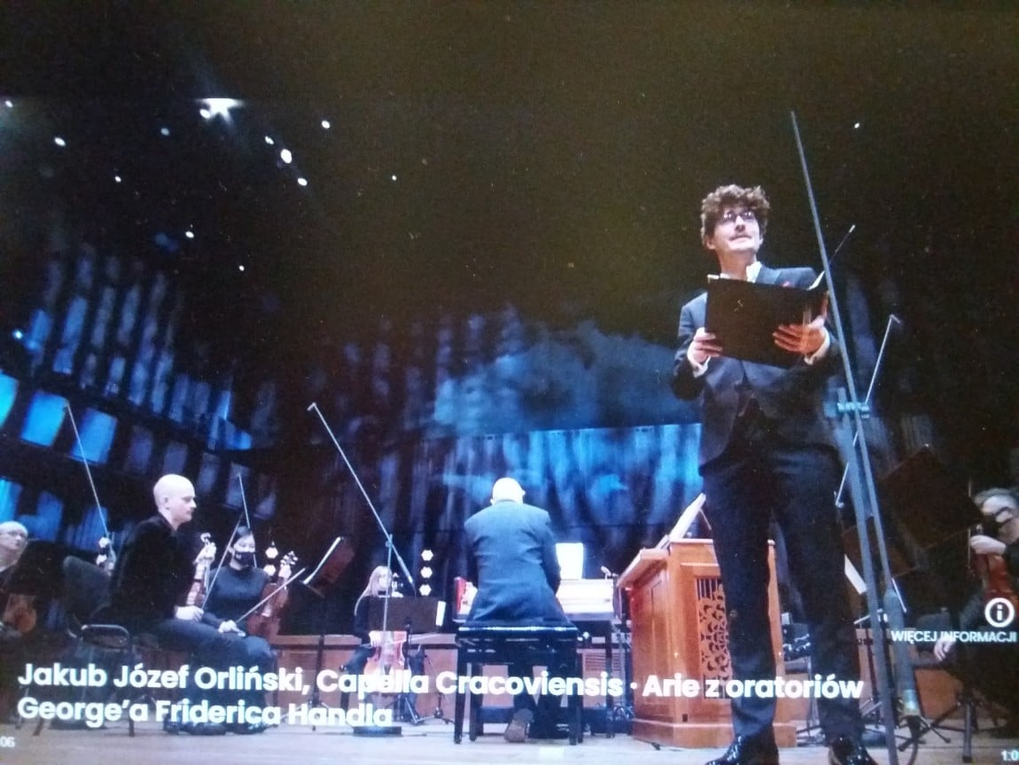 Ten obdarzony pięknym głosem i uroczą osobowością kontratenor zabrał mnie w podróż po najpiękniejszych ariach ze słynnych oratoriów Haendla. Towarzyszyła nam kameralna orkiestra Capelli Cracoviensis pod dyrekcją grającego na klawesynie Jana Tomasza Adamusa. W kilku muzycznych obrazach dołączył do nas chór Capelli Cracoviensis – raptem 12 osób. Było kameralnie, intymnie, bez zadęcia i ze smakiem. A do tego jeszcze obraz dorównywał muzyce, był równie piękny i precyzyjny. Warto było, i obejrzeć, i wysłuchać.