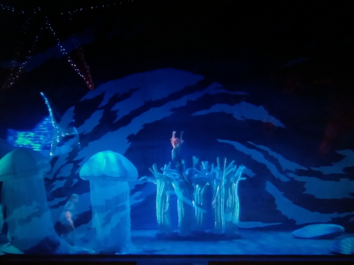Mistrzostwem choreograficznym i prawdziwym popisem możliwości teatru staje się część pokazująca podwodne przygody głównej bohaterki. Rośliny rosnące na dnie oceanu, poruszające się w powolnym rytmie przepływu prądów morskich, pływające wodne stworzenia i nurkujący główni bohaterowie tej sceny robią wrażenie. Wszyscy ruszają się tak, że trudno uwierzyć iż opowieść dzieje się na scenie, w teatrze.