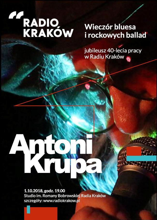 To bez wątpienia jedna z najbarwniejszych postaci krakowskiego dziennikarstwa i jedna z nielicznych dziś prawdziwych osobowości radiowych. Dokładnie 1 października jubileusz 40-lecia pracy w Radiu Kraków świętował Antoni Krupa. Niezmiennie od 40 lat swoją ogromną muzyczną wiedzą i miłością do muzyki na antenie Radia Kraków dzieli się z kolejnymi pokoleniami słuchaczy. Również ten wyjątkowy jubileuszowy wieczór spędził tak, jak kocha najbardziej: przed mikrofonem, z gitarą i harmonijką, w towarzystwie przyjaciół i słuchaczy...