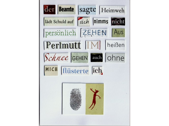 Herta Müller tworzy kolaże od końca lat 80. Najpierw, podobnie jak w przypadku Wisławy Szymborskiej, pełniły one funkcję pocztówek wysyłanych do przyjaciół i znajomych. Autorka, której się nie podobały kolorowe widokówki, woziła ze sobą nożyczki i tworzyła własne kompozycje z krótkich zdań i obrazków wyciętych z gazet. Kolaże te pokazują też moje poczucie humoru- mówi Herta Muller: