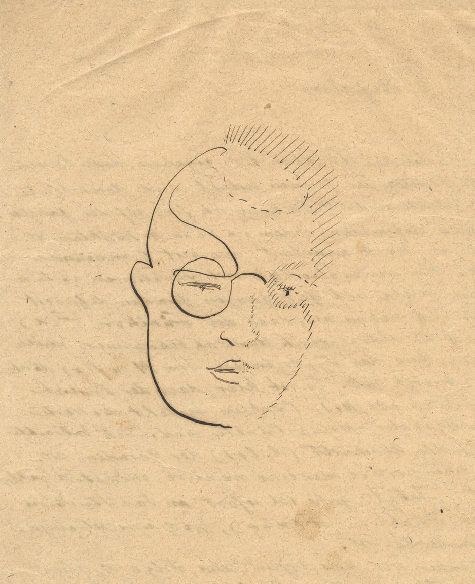 Leon Chwistek, bez tytułu [autoportret], lata 20. – lata 30., tusz / papier, 34 × 21 cm, kolekcja prywatna