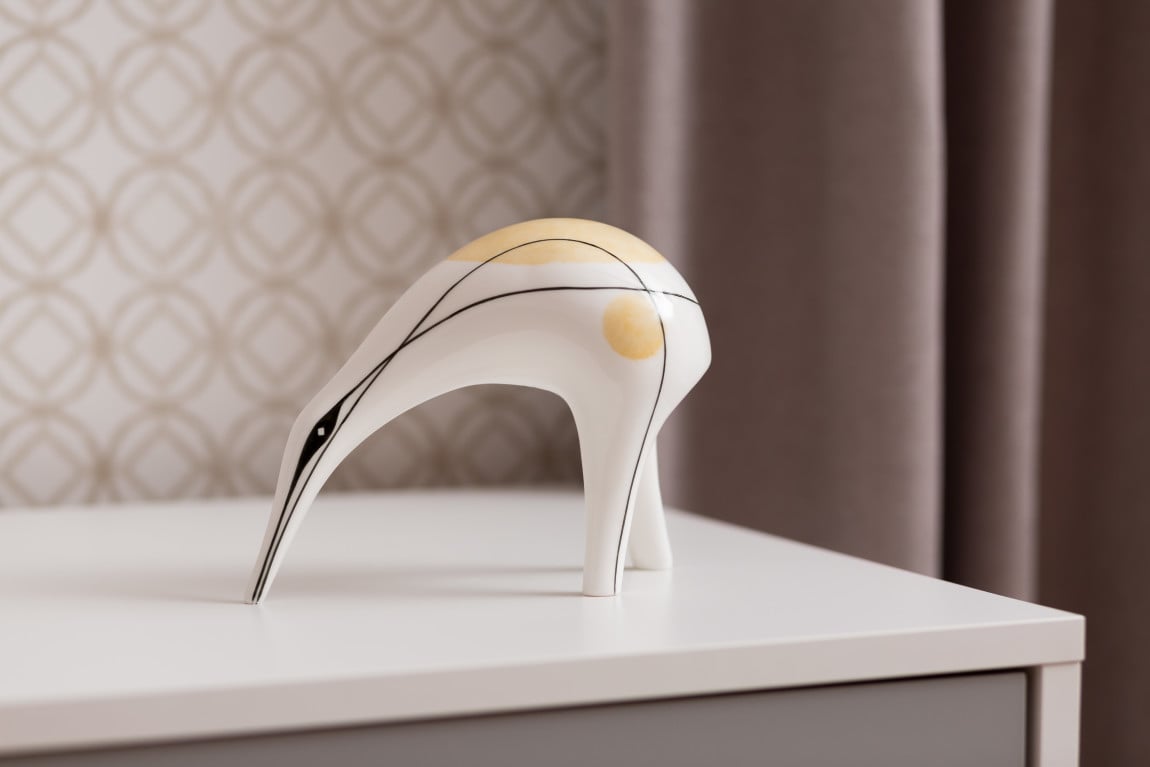Najlepszy polski design! Miłośnicy piękna zaklętego w porcelanie, poszukujący projektów nietuzinkowych, nieprzeciętnych, nowatorskich, zaskakujących nie przejdą obojętnie obok figurki Kiwi. Zaprojektowana przez Lubomira Tomaszewskiego w 1958 roku okrzyknięta została przez portal Culture.pl ikoną polskiego wzornictwa. Kiwi to jedna z kultowych projektów rzeźb kameralnych, powstałych w latach 60. XX w. w Instytucie Wzornictwa Przemysłowego w Warszawie, współcześnie figurki produkowane są ręcznie z oryginalnych modeli form matek. Oryginał Kiwi znajduje się w kolekcji Muzeum Narodowego w Warszawie. Kiwi, jak każda z produkowanych obecnie w manufakturze Ćmielów figurek, posiada dedykowany certyfikat autentyczności, potwierdzający pochodzenie oraz wszystkie informacje o projekcie - nazwę, rok zaprojektowania, nazwisko projektanta i niepowtarzalny numer rzeźby.