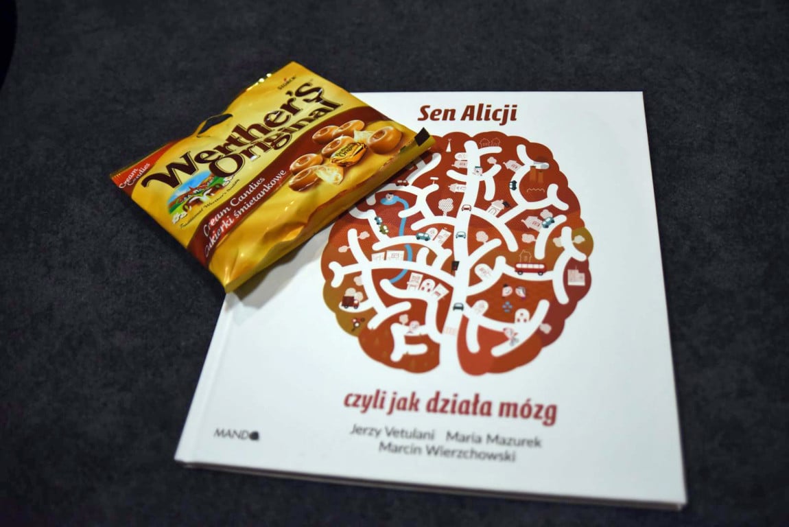 2. „Mlekomlaty” - ulubione cukierki profesora Vetulaniego i książka „Sen Alicji” J. Vetulani, M. Mazurek podarowane na licytację przez rodzinę Profesora Vetulaniego
