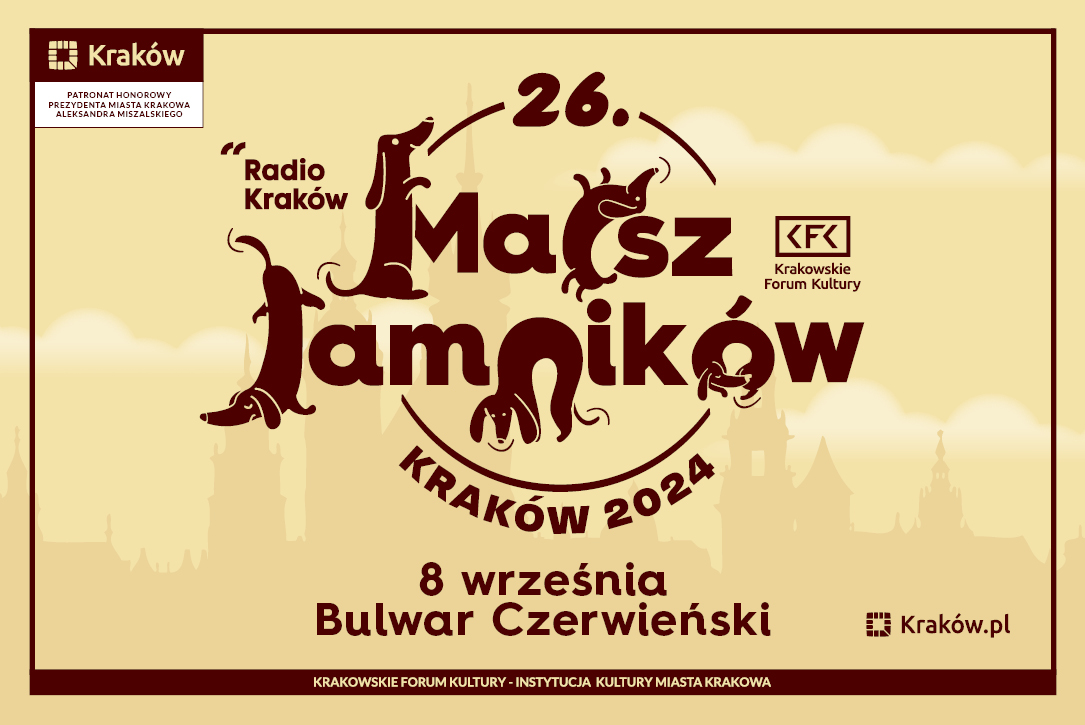 W 1994 roku do idei organizacji Marszu jamników wróciło Radio Kraków. I na przekór jamniczym sceptykom, przeciwnikom i malkontentom, mrożkowską prawdę, iż „dusza jest pozioma” udowadnia od lat, gromadząc w Krakowie tłumy wielbicieli największych psich indywidualistów. Nie inaczej będzie i w tym roku. Podczas 26. Marszu jamników pokażemy, że historia kołem się toczy, a w przypadku Krakowa i jamników to historia ponad 500-letnia! Historia, w której przewijają się i król Zygmunt I, i partyjny dywanik w ponurym gmachu przy dawnej ulicy Solskiego, i Sławomir Mrożek z „jamniczym konkursem” w „Przekroju”, który zainspirował późniejszego redaktora naczelnego tego najpoczytniejszego w tamtych czasach tygodnika oraz Radio Kraków, które udowadnia, ze pomimo rozlicznych kontrowersji, pomimo szerokiego grona zagorzałych przeciwników rasy – jamnik to po prostu styl życia!